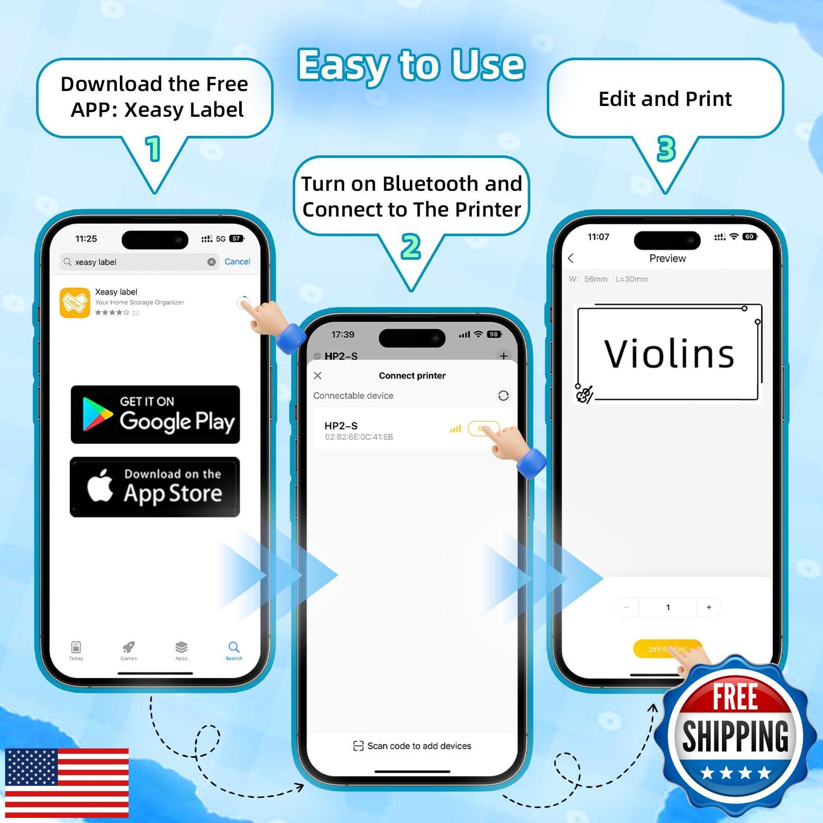 LFPERT Label Maker Machine with Tape, HP2-S Portable Bluetooth Label Printer, Mini Wireless Labeler Makers with Multiple Templates, Fits Home, School, Office, Kitchen - Blue Features Easy to use: This label maker machine with tape can connect to the app and set up device within one minute. Create labels quickly & easily without the need for ink or toner. compared with traditional label maker, the weight and volume are only half of traditional label maker. smaller, smarter & convenient for users to carry. enable you to print anytime, anywhere no matter where you go Wide use: Label maker machine with tape are widely used in daily life. You can use it for businesses, homes, schools, offices, retail institutions, clothing, and jewelry. Use this label maker machine to print labels, helping you better record important information & differentiate item、marked item. ideal for office professionals, students, amateur archivists & family moms Multiple templates: This label maker machine with tape has more than built-in 800 patterns, 400 borders, 100 fonts, all free to use, you can easily create all kinds of design label stickers from the app (including: text, QR code, barcode, material, image, time and border, etc) Come use Bluetooth label printer to create your own DIY customized labels High quality printing: The label maker machine with tape adopts thermal printing technology, equipped with a 203DPI resolution print head, No ink, BPA-free can also print high-definition quality. support batch printing to improve work efficiency, HP3 Bluetooth label printer is a great helper for work & life Compatibility: Our label maker machine compatible with various sizes of label paper, including 12X40mm, 14x30mm, 15x30mm etc. The packaging lists: portable label maker, label paper rolls, Type-C Cable, user manual. Bluetooth label printer is an ideal gift choice for Christmas, Childrens Day, Teachers Day, Thanksgiving & other holidays Shipping Free & Fast Shipping: We offer free shipping to most of the USA with a normal delivery time of 3-7 days. However, due to the current situation, additional delivery time (up to 3 weeks) may be required for some items. Alternative Carriers: We may use alternative carriers (e.g., USPS, FedEx, UPS) to ensure your package arrives safely and on time. Due to the use of multiple carriers, we are unable to provide a tracking number automatically. Handling Time: Orders are processed and shipped within 1-2 business days of receiving cleared payment. Shipping Restrictions: Shipping to Alaska, Hawaii, Puerto Rico, Guam, and other US territories may incur shipping charges or delivery restrictions. Please contact us before ordering, or your order can be refunded/cancelled. State Restrictions: Certain items may not be shipped to California due to state regulations. Contact for Tracking Updates: If you require tracking updates or have any concerns about the delivery of your order, please feel free to contact us, and we will be happy to assist you. Return Policy 30-Day Hassle-Free Returns: If you are not completely satisfied with your purchase, you can return the item for free within 30 days of receiving it for a full refund or exchange. Easy Return Process: Contact us, and we will provide you with a prepaid return shipping label and detailed instructions. No Restocking Fee: There are no restocking fees for returns. However, the buyer is responsible for return shipping costs if the return is not due to a seller's error. Refund Processing: Refunds will be processed within 1 business day of receiving the returned item in its original condition. Payment We accept all major credit cards, PayPal, and Apple Pay for your convenience. Your payment information is secure and encrypted to ensure a safe and seamless transaction. Please complete your payment within 3 days of purchase to avoid any delays in shipping. Feedback Your feedback is extremely important to us. We strive to provide the best products and customer service possible. If you are satisfied with your purchase, please take a moment to leave us a positive review. If you have any concerns or issues with your order, please contact us before leaving negative feedback. We are committed to resolving any problems and ensuring your satisfaction. Contact Us If you have any questions or concerns, please feel free to reach out to our customer support team. You can contact us through the eBay messaging system. We are available Monday to Friday, 9:00 am to 5:00 pm EST, and we will do our best to respond to your inquiry within 24 hours. Thank you for supporting our small family business!