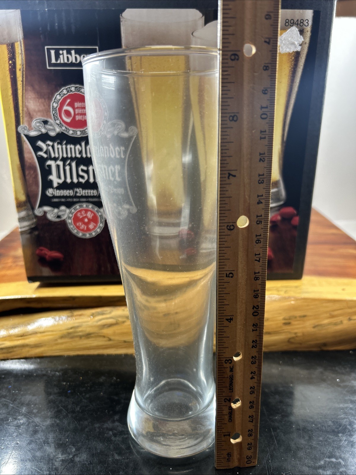 The Libbey Rhinelander Pilsner Set of 6 Glasses is perfect for any bar or man cave. Each glass is 23 oz and made of clear glass, making them ideal for all occasions. This six-piece set includes pilsner glasses that stand at 9 1/2" tall, providing a stylish and functional addition to your home. Cheers to enjoying your favorite beverages in style with these new-in-box Libbey glasses.