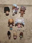 This is a lot of 9 L.O.L. Surprise! dolls in varying sizes ranging from 1.5" to 3" to enhance any collection. All are preowned in average condition. The little one in the middle bottom row does have some damage around the hairline and rub marks/discoloration.