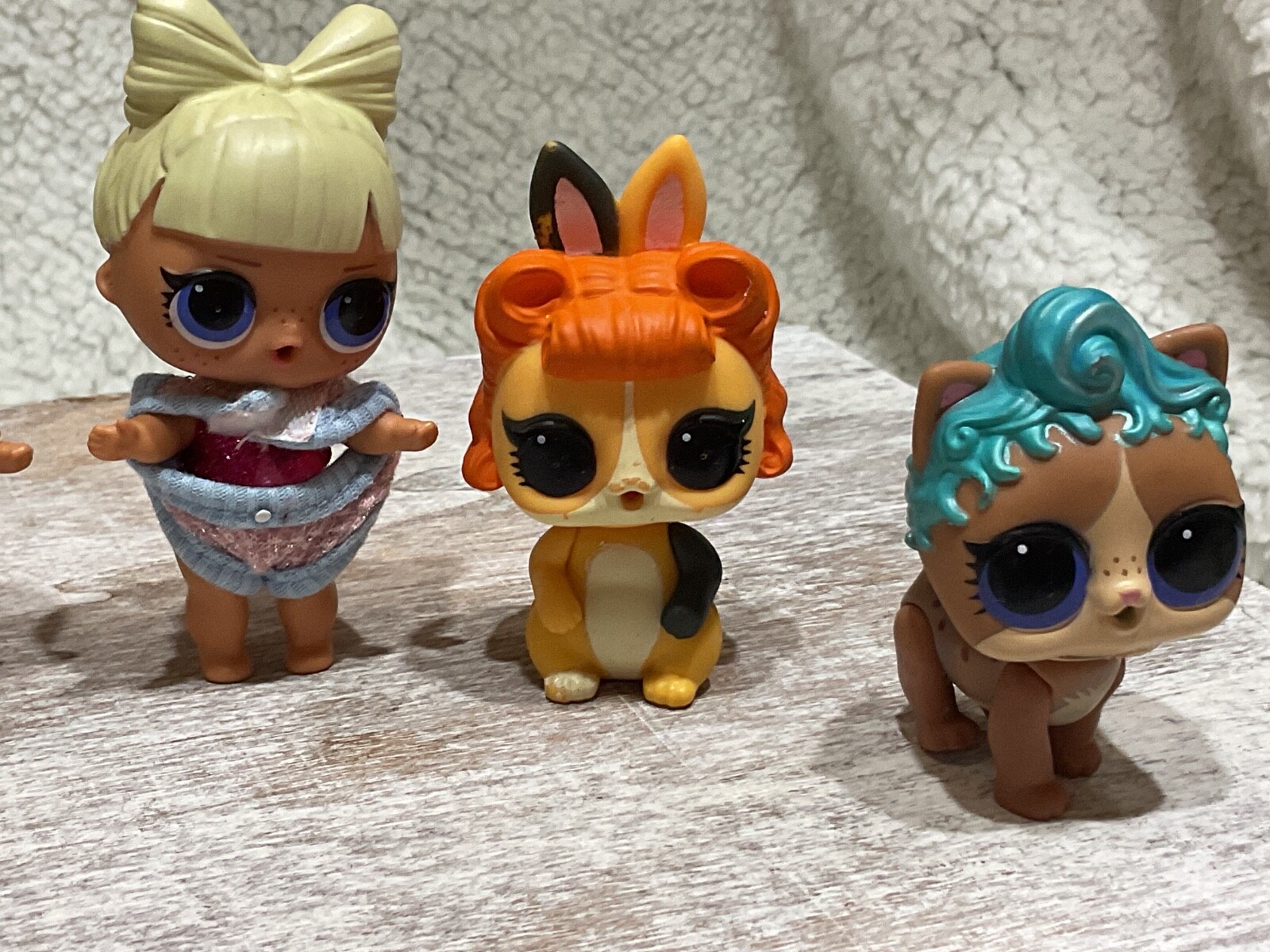 This lot of 7 LOL Surprise Dolls and Pets features a variety of play dolls and accessories from the popular L.O.L. Surprise! franchise by MGA. The 3-inch dolls are made of plastic and are suitable for all occasions, making them a great addition to any child's collection. Each set includes doll accessories and is part of the original product line manufactured between 2010-2019 in China. Perfect for youth, these dolls and pets are designed for endless imaginative play for both boys and girls.