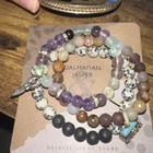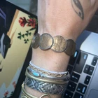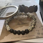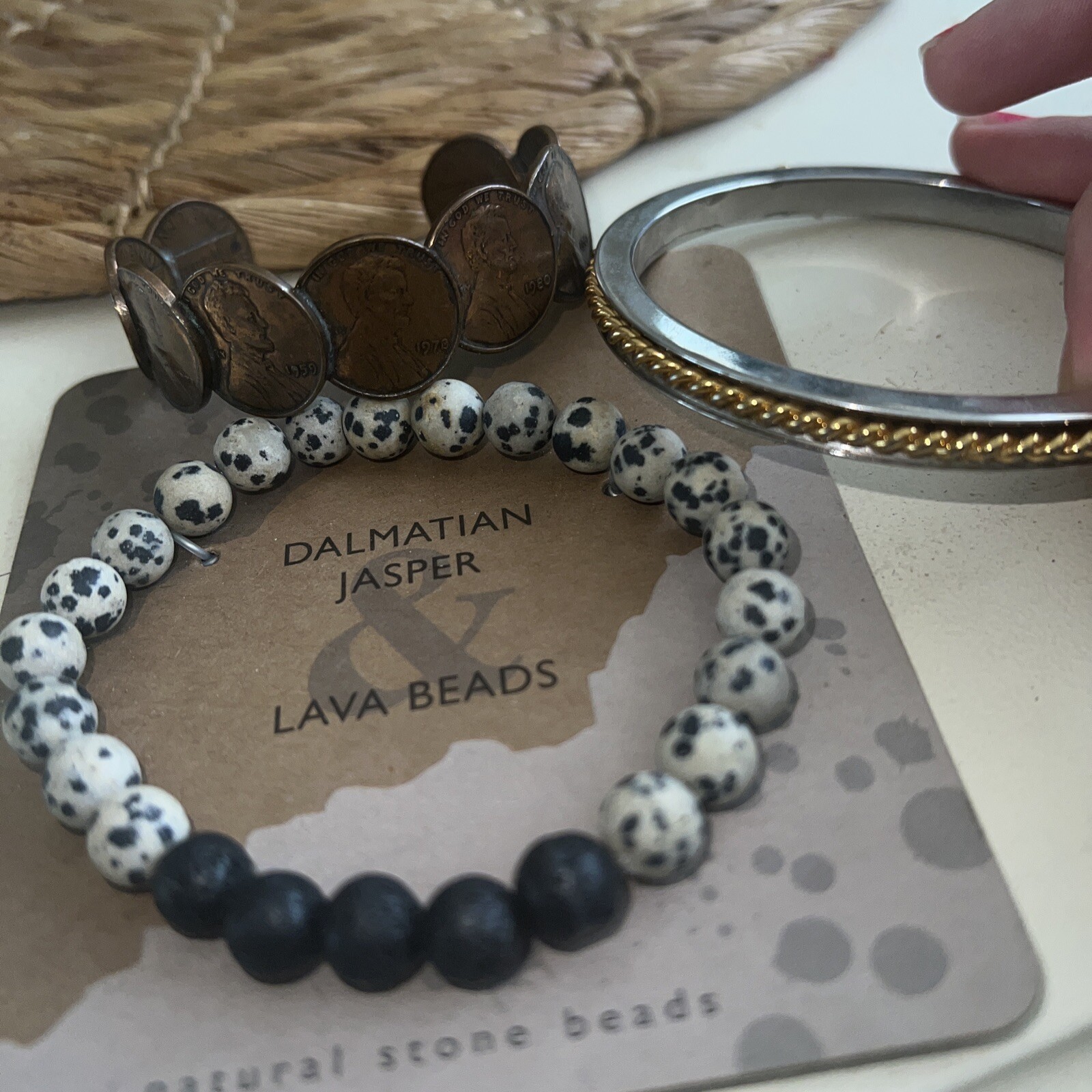 New crystal gemstone Dalmatian jasper lava bead natural bought for 20$ Penny vintage cuff it’s new but has a look of wear as it sits Bonus designer gold solid silver cuff