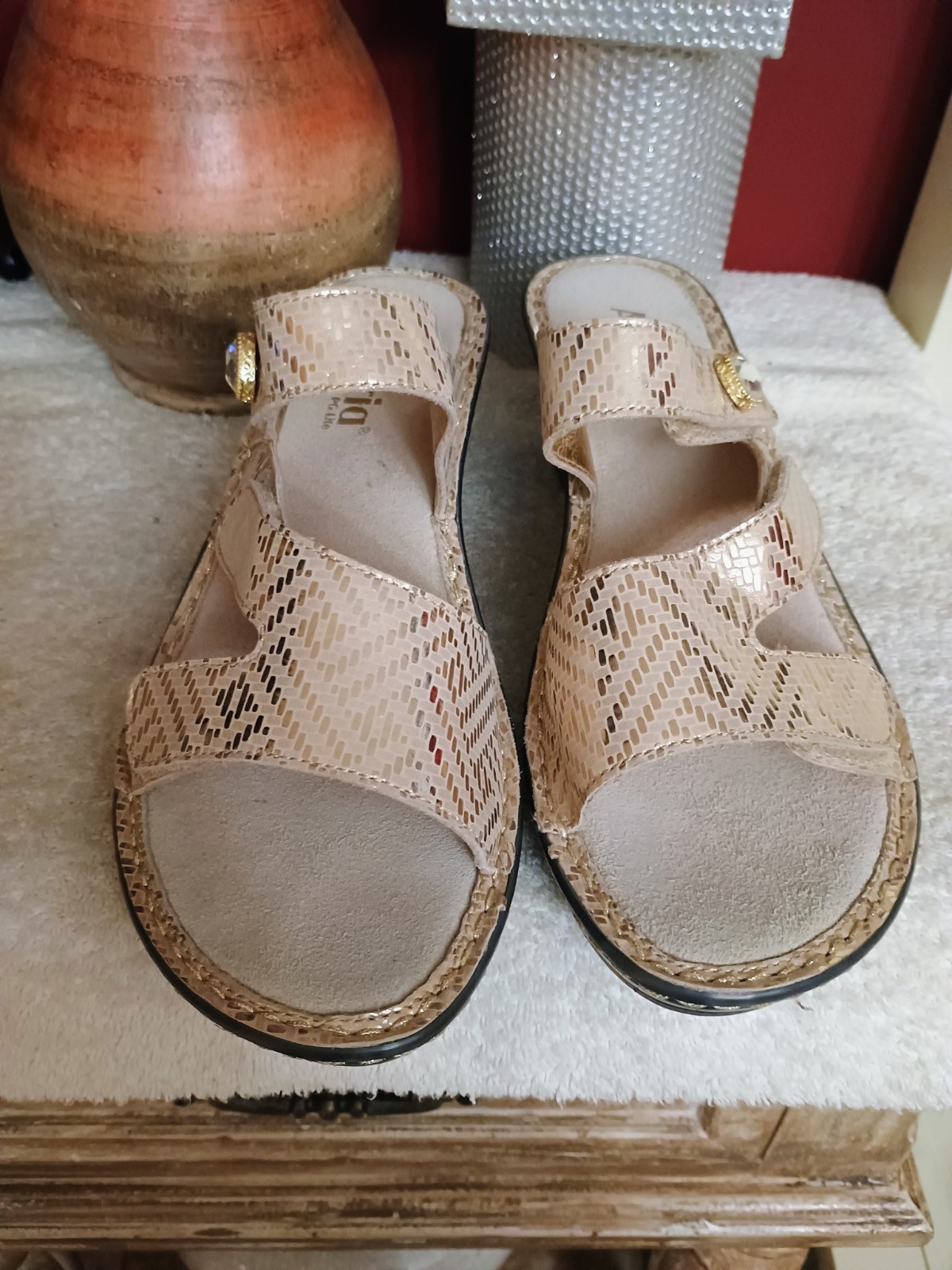 Elevate your style with the LOTI Gold Dazzler - Style 529 Slide On Open Toe Wedge Sandal. The sleek gold color and metal theme make these sandals a perfect addition to any outfit. The wedge heel style provides both comfort and sophistication, making them suitable for any occasion. These sandals are designed for women and come in a EUR size. The slide style allows for easy wear, while the open toe design keeps your feet feeling fresh and open. The On brand ensures high-quality and durability, making these sandals a long-lasting investment. Add the perfect touch of glam to your wardrobe with the LOTI Gold Dazzler - Style 529 Slide On Open Toe Wedge Sandal.