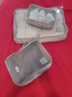 This PINK Travel CASES for Luggage Bag 3-Pc Organizer Set is perfect for anyone looking for a lightweight and soft case to organize items in their luggage. With three different sizes, including 18x12x3, 12x9x3, and 9x6x3, this set can accommodate a variety of items. The accessory cases are made of polyester and mesh materials , with a see-through mesh top and zip-around feature. In addition to keeping your luggage organized, these cases can also be used for storing home items and linens . The dual-purpose storage capability makes them a versatile addition to your travel gear. The set features no hard-bottom support, making it easy to pack and store when not in use. Make your travel experience smoother and more organized with this PINK Travel CASES for Luggage Bag 3-Pc Organizer Set. 3-Piece Travel Accessory Storage Cases w/ Luggage Name Tag DUAL-PURPOSE: Organize Your Travel Accessories in these bags/cases, and Store Inside of Your Main Luggage. Also Useful for Home Organization , such as Storing Linens and Clothing-Accessories, for Drawer & Shelf Organization. Examples: 1 Sheets Set [Fitted, Flat, 2 Pillow Cases] will fit in Large Bag/Case. 6 Pairs of Socks can fit in Small Bag/Case. Brand: SUTTON HOME FASHIONS, Bon Voyage Color: PINK [Magenta, Fuchsia] Material, Fabric: Mesh Bags, POLYESTER - Tag, PVC Features: Zip Around Soft Material - No Hard-Bottom Support See-Through Mesh Top Soft Carry-Strap includes 1 Luggage Tag dual purpose: For Travel & Home Storage-Organizing Set includes: 1 NAME TAG, 4”x2.5” - Not same color as Bag-Cases, See Photos. 3 SOFT-Bottom CASES with CARRY STRAPS 3 Sizes, As Described on Packaging: 18" X 12" X 3" D - Large can hold up to 1 Sheet Set [Shown in Photos] 12" X 9" X 3" D - Medium 9" X 6" X 3" D - Small can hold Items such as: WashCloths, Undies, Socks [Shown in Photos] MFR.-Package weighs 7.2 Ounces.