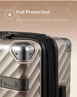 This LUGGEX carry-on luggage is the perfect solution for your travel needs. It meets the airline requirements for carry-on luggage with its 20-inch size and lightweight polycarbonate material. The navy color makes it easy to spot on the luggage carousel, while the champagne accents add a touch of style. With features like a durable handle and smooth rolling wheels, this luggage makes navigating through airports a breeze. The sleek design and ample storage space make it a great choice for short trips or weekend getaways. Upgrade your travel game with the LUGGEX carry-on luggage. Size: 22x14x9 IN, Weight: 7.0 LB, Capacity: 35L (Including spinner wheels accessories, etc.) Reinforced Aluminum Corner Protectors: This carry-on suitcase features 4 round 100% aluminum corner protectors, providing superior protection against damage. Travel fearlessly, knowing your belongings are safe, even during rough transportation. 45% Thicker Polycarbonate: Crafted with 3-layered Polycarbonate, our hard case luggage is exceptionally lightweight yet highly resilient. Withstands extreme temperatures of 40-50℃ without cracking, ensuring your valuables remain secure during your journeys. Versatile 15% More Packing Space: Unlock new possibilities with our expandable luggage, offering an additional 2 inches of packing space. Perfect for embracing the latest fashion trends while still having room for all your essentials