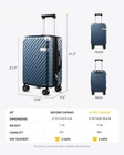 PACKING DIMENSION: 19.2x12.9x9.3 IN; OVERALL DIMENSION: 21.9x13.8x9.4 IN, Weight: 7.0 LB, Capacity: 35 L Airline Approved: This carry on luggage 22x14x9 airline approved meets most airlines' carry-on size restrictions. Enjoy seamless boarding with no requirement for additional luggage handling. Reinforced Aluminum Corner Protectors: The carry on suitcases with wheels features 4 round aluminum corner protectors, provide superior protection against damage. Travel fearlessly with this hard case luggage, knowing your belongings are safe, even during rough transportation. Burst-Free Zippers: Our expandable luggage features a double-layer zipper design, that meets standards for increased durability. Carry everything you need with confidence when travelling. Organized Interior Space: Our 20 inch carry on luggage features additional inner lining compartments, allowing you to neatly organize your items. The extra compartments of this carryon luggage provide added tidiness and convenience for your travels. LUGGEX's Commitment to Quality: LuggeX black suitcase comes with a free 3-year protection plan. Our dedicated customer service team is ready to assist you within 12H if you encounter any issues with our reliable travel suitcase. On Oct 11, 2024 at 14:01:25 PDT, seller added the following information: On Oct 21, 2024 at 03:51:54 PDT, seller added the following information: