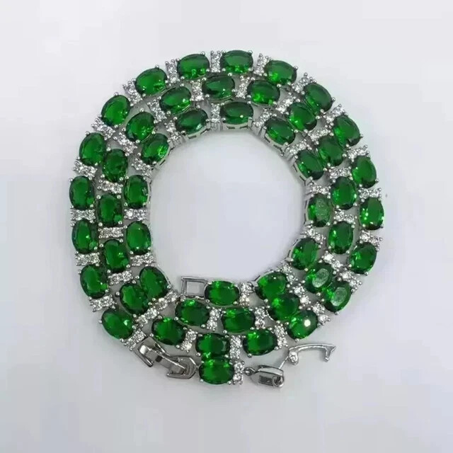 $ 169.6518CT Round Cut Lab Created Emerald Women's Tennis Necklace 14k WhGold Plated 18”
