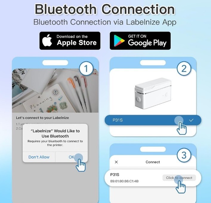 Introducing the Label Maker Machine w/Tape P31S Portable Thermal Printer, Built-in Cutter in Pink color. This versatile label maker is capable of printing monochrome labels with a maximum speed of 60 prints per minute. It uses thermal printing technology and is compatible with iOS and Android devices via Bluetooth connectivity. The Label Maker Machine comes with a Lithium Polymer battery that is included with the package. It is a portable device that has a small footprint, measuring just 6.5 x 1.77 x 4.49 inches. The device has a maximum input sheet capacity of 1 and is designed to print labels. The Label Maker Machine with Tape P31S is perfect for businesses and home offices that require a reliable and efficient label printing solution.