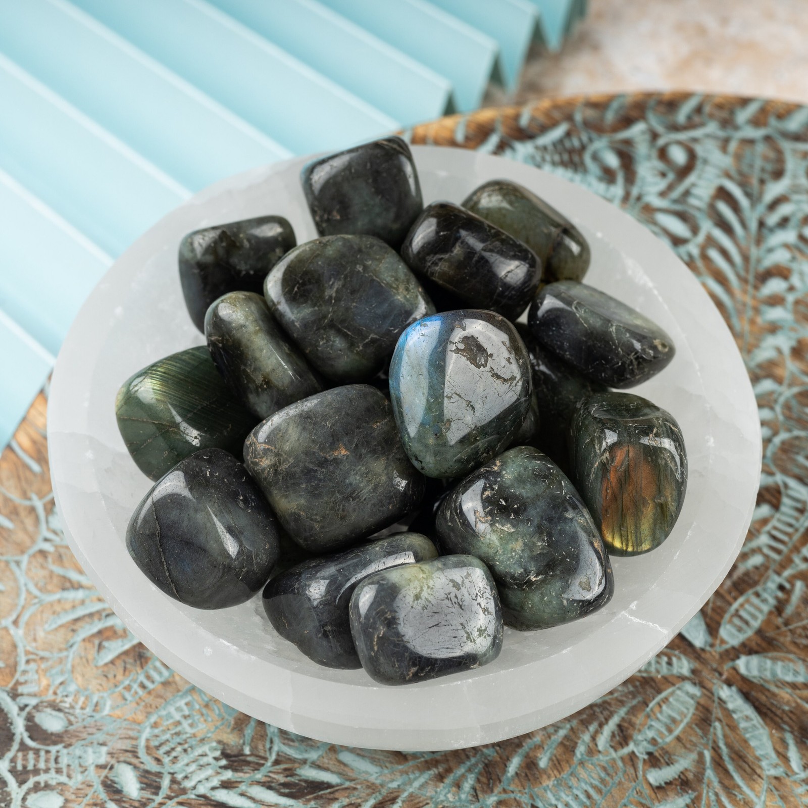 Elevate your spiritual journey with our stunning Labradorite tumble stone, a powerful addition to your collection of crystals and healing stones, perfect for both beginners and seasoned crystal enthusiasts. Labradorite Crystal Properties: ● Chakras: Third Eye, Crown ● Zodiac: Leo, Scorpio, Sagittarius ● Element: Water ● Healing Properties: Enhances intuition and psychic abilities, promotes transformation, protects against negativity. Product Features: Natural Crystals: Each Labradorite tumble stone is a genuine, natural crystal, ensuring you receive an authentic piece of Earth's beauty. Our stones are sourced ethically and are polished to perfection, preserving their natural beauty and energy. Energy Healing Crystals: Utilize the powerful energy of Labradorite crystals to enhance your meditation sessions and spiritual practices, fostering a deeper connection to your inner self. Meditation Accessories: Incorporate these crystals into your meditation routine to deepen your practice and amplify your intentions. Crystal Gifts: Thoughtful and meaningful, these Labradorite stones make wonderful spiritual gifts for loved ones seeking peace and tranquillity. Bulk Stones for Jewellery Making: Available in bulk, these versatile stones are perfect for creating stunning, personalized jewellery pieces and for crafts. Embrace the healing properties of Labradorite and elevate your spiritual journey with these exquisite tumble stones. Whether you're looking for meditation accessories, energy healing crystals, or unique crystal gifts, our Labradorite tumble stones are the perfect choice. Add these beautiful crystals to your collection and experience the profound benefits they offer. Shop now and enhance your spiritual practice with our Labradorite Crystal Tumble Stone.
