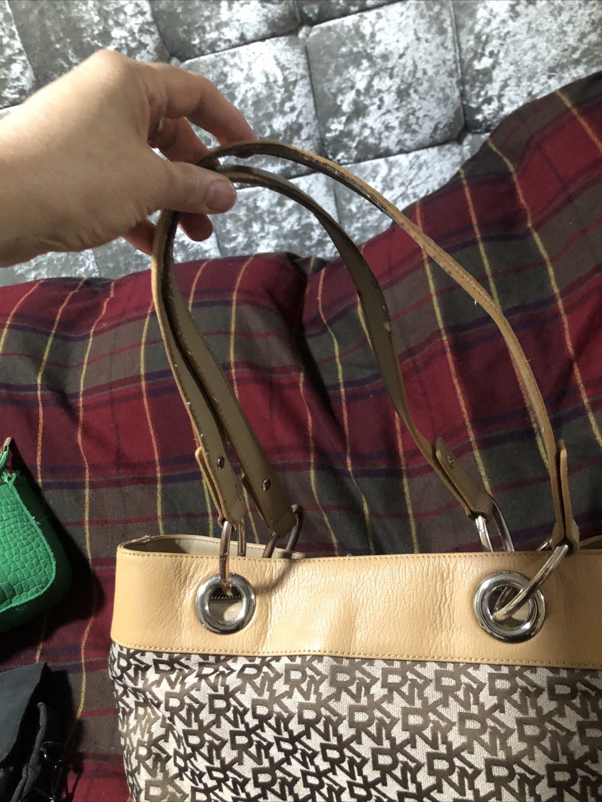 Ladies Large DKNY Brown Monogram Canvas Tote Bag + Small Cross Body Bags ๐ผ , the green bag is not cross body bag See my other items Delivery within the uk ๐ฌ๐ง only