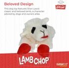 Includes one squeaker within the stuffing Made with polyester fibers 6" Mini Shari Lewis' classic and beloved lamb is adored by dogs. It's super soft exterior makes Lamb Chop great for cuddling, and its squeaker makes it fun for playtime. 6" Mini Lamb Chop is great for smaller dogs. Not intended for aggressive chewers. Pet should be supervised while playing.