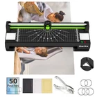 ✔【COMPATIBLE FOR MORE DIFFERENT SIZE POUCHES】: This laminator machine is compatible with laminating pouches from the size of business card to the size of A3 paper,boasts with a quick warm-up and fast laminating speed to boost your efficiency and Protect and Preserve your Important Documents such as cards, presentation materials and photos, nicely for home, office and school use. ✔【5 In 1 LAMINATOR MACHINE AND NO NOISE】: Including a corner rounder and three-different-patterns paper trimmer and 50 pouches(25 for A4, 25 for A6)), this is a newly updated laminator machine with a speed of 250mm/min for the laminating system. Besides owning its double roller design ensures a smoother and faster lamination, so there will be low noise when laminating the paper, which create an quieter environment for us. ✔【ABS BUTTON INSERTED AND NO PAPER JAM】: All the laminating process are easy to operate, you could see the related introducing video in the pictures page. If the papers or pouches are stuck in case, press the ABS Button and remove the stuck papers or pouches from the laminator, ONE-TOUCH PAPER EXIT AND won’t affect your machine. ✔【3 IN 1 PAPER TRIMMER AND BEAUTY CUTTING】: Featured with three different cutting patterns, straight, perforated & wave, the laminating machine is built in a sharp and safe rotary paper trimmer, accurate grid lines and removable metal bar for effortless cutting. Also it comes with a corner rounder, you can easily get beautiful rounded corners, especially suitable for photos papers, etc fillet cutting. Simple and Practical. ✔【TEMPERATURE CONTROL TO PROTECT YOUR MACHHINE】: Built in a 2-roller heating System(supported both thermal and cold laminating works), this laminator won't be too hot with an intelligent temperature control system, which would be more safety to protect your machine and make it last longer year.