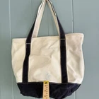 Good preowned condition with mild staining (see photos). Mostly color bleed from trim after washing. Medium size (approx. 13" H x 17" W x 6" D). 100% cotton canvas in natural with navy trim and handles, front pocket, and open top. Classic coastal style—perfect for beach weekends, sailing, or New England getaways. Keywords: lands' end, tote bag, canvas bag, embroidered bag, personalized tote, navy trim, zip top tote, beach bag, travel tote, work bag, preppy style, coastal style, boat bag, granola chic, euro summer, New England, Maine coastal, Cape Cod, Nantucket, Martha's Vineyard, coastal grandmother, nautical style, East Coast prep, lands end