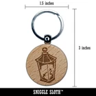 Lantern Lamp with Fire Engraved Wood Round Keychain Tag Charm