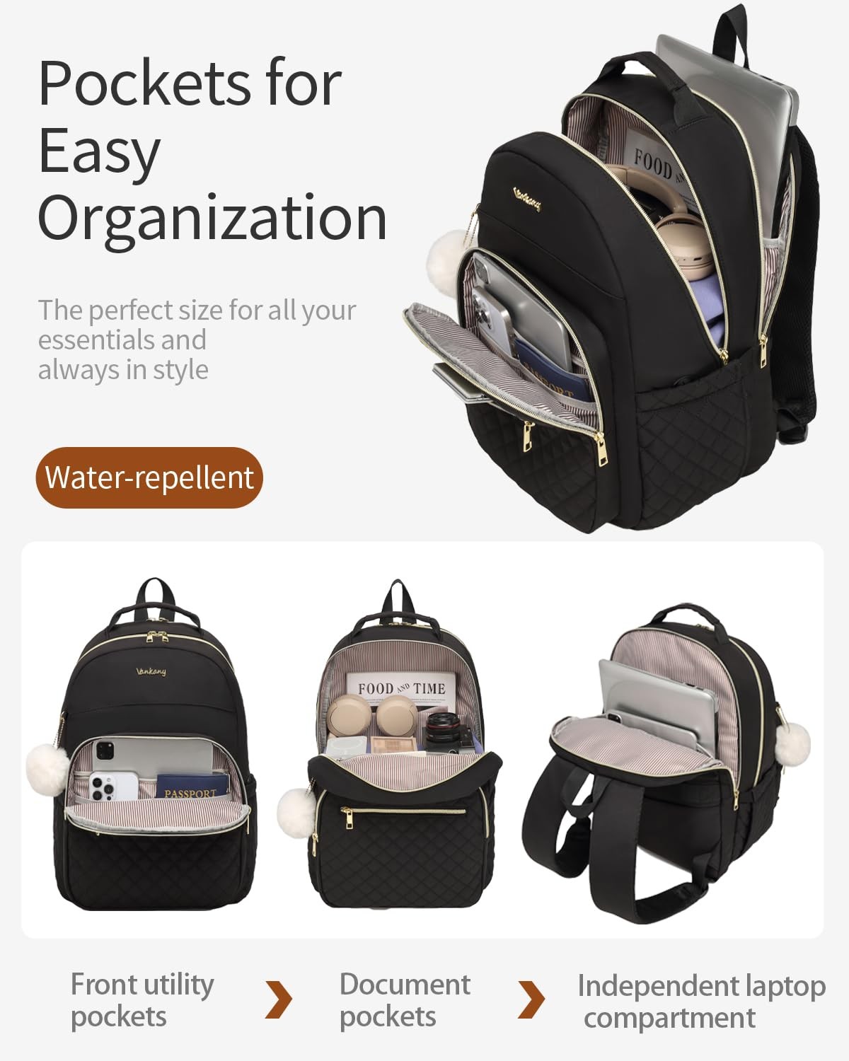 The water-resistant backpack offers a independent padded laptop compartment for computer storage and a lots zipper pockets to keep valuables secure. Perfect for students, travelers, commuters, and adventurers alike, this daypack combines practical features with a sleek design to meet all your daily needs. The stylish quilted and bright colors make the backpack trendy and functional. Generous Main Compartment: Ideal for carrying school essentials or daily essentials, keeping everything organized and easily accessible. Dual Water Bottle Pockets: Stay hydrated on the go with convenient dual side water bottle pockets. Whether you're headed to class or exploring the outdoors, you'll have easy access to your drink. Enhanced Comfort and Carrying Options: Padded shoulder straps make for comfortable carrying, whether you're using it as a school backpack or simply an everyday back pack. The long tote handle provides additional carrying flexibility. Versatile Attachment Features: With charging hole for convenient to charge your phone while walking, while the zipper pocket on the back enable storage valuables. The bookbags combines functionality with style, making it the perfect companion for work or any adventure. A Lots of Useful Pockets: Featuring a separate padded laptop compartment that holds and protects a 16 / 17 inch laptop, ensuring your tech stays safe on the go. The large main compartment is roomy for daily necessities, such as folders, text books, lunch box and electronic. Quick access front pockets are perfect for keeping all of your smaller items secure. On the outside, it has two water bottle pockets and a back anti-theft pocket for secure storage Durable Material & Solid: versatile backpack are made with robust nylon fabric, lining, zippers & straps in colors & designs, this adult backpack ensures longevity and resistance to daily wear and tear. Our bookbags are water-repellent and easy to clean, making it an ideal companion for your school or urban commute Hiddedn Charging Hole: Design with charging hole. Offering you a more convenient way to charge your phone while walking. You can charge the phone via the side pocket's hole so that you don't need to take the portable charger all the time. Just keep your phone powered up on the go. Please noted that the backpack can not power itself, charging hole only offers an easy access to charge Travel Friendly: The luggage strap allows backpack fit on luggage/suitcases by sliding over the upright handle tube for easier carrying. It has padded s-shaped mesh and padded shoulder straps for shoulder comfort. Top handles allow for easy grabbing Versatile and Multi-Functional: Featuring a practical silhouette and modern style that always looks amazing. It would be a travel backpack, Laptop backpack, work backpack, college backpack, teacher backpack, nurse bag, women backpack purse and student school backpack.