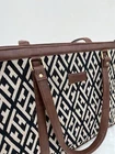 This laptop bag is perfect for any woman who needs to bring their computer to work. The exterior is made of a beautiful jacquard and leather material, with a brown handle and strap made of faux leather. The bag is spacious, with a large size of 16 inches in width, 13 inches in height, and 10 inches in depth. The interior is lined with a gray color, and the bag is designed to hold a laptop, making it perfect for work. The brand is OFFICE, and the bag is classified under the Clothing, Shoes & Accessories, Women, Women's Bags & Handbags categories. This laptop bag is a stylish and functional accessory for any woman who needs to bring their computer to work.