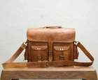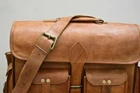 For Sale Beautiful Genuine Vintage Brown Leather Handmade Laptop / Messenger Satchel Bag FOR STUDENTS, OFFICE WORKERS AND COMMON PEOPLE Features Size:- 13x17x6'' inch Green canvas fabric 100 % genuine leather with canvas lining,Stylish and light weight 100% Genuine Leather Messenger Bag With Durable Canvas Lining Made from the finest Hunter Goat leather and lined with high quality canvas this bag is hand crafted by artisans working with leather for decades Rustic Vintage look which makes each bag unique ( just like the person who owns them ) Padded compartment for Laptop's ( fits up-to laptop / Mac book ) , 60" adjustable shoulder strap made by goat leather hide Internal 2 compartments and 2 zipper 2 small pockets on both side o Back side 1 zipper Front 2 small pockets Perfect Accessory or Gifts for all Professionals , students , artists This is perfect to use as a: messenger bag for men leather, messenger bag for women leather, messenger bag leather, leather golf bag, laptop bag leather, leather bags, leather camera bag, leather cross-body bag, leather computer bag, business leather bag, messenger bags leather, leather laptop bag for men.