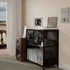 3-Tier record player stand offers a perfect combination of style and functionality, designed to organize your record player and vinyl collection. The top shelf is ideal for your turntable, while the two lower tiers provide ample space to store up to 300 vinyl records, books, or other accessories. Its compact design keeps everything neatly organized, while adding a touch of vintage charm to any room. Perfect for music lovers looking to display their collection with both convenience and style. 300 Vinyl Capacity & Compatible with Most Record Players: The assembly dimensions are 28.15" x 14.17" x 30.79", offering ample space to store up to 300 standard vinyl records. The support platform, measuring 16.54" x 14.17", is spacious enough to accommodate most record player sizes, providing a stable and reliable surface for your equipment. Heavy Duty & Stable: Weighing 23.5 lbs, this vinyl record holder table is built for strength and stability. The reinforced metal frame and sturdy construction ensure exceptional durability and prevent wobbling, even when fully loaded with records and equipment. Its robust design makes it a dependable choice for both storage and display, offering reliable support for your record player, vinyl collection, and accessories with ease and confidence. 3-Tier Record Player Stand with Vinyl Storage: This stand features three spacious tiers, providing a dedicated space for your record player, vinyl collection, and accessories. The top tier is perfect for your turntable, while the middle and bottom tiers can hold up to 300 records, books, or decorative items. Its practical design not only keeps everything organized but also adds a stylish, vintage touch to any room. Baked Enamel Wood: The wood is coated in a durable baked enamel finish that combines vintage charm with lasting protection. Its smooth, glossy surface resists scratches and wear, ensuring both style and durability over time. Reinforced Metal Frame: The frame is built for durability and strength, offering reliable support to ensure stability even when fully loaded. Its sturdy construction not only enhances the overall stability of the stand but also adds a sleek, industrial touch, perfectly complementing the vintage wood surface. This combination ensures both functionality and style, making it a long-lasting and practical addition to any space. Adjustable Foot Pads: Equipped with adjustable foot pads to ensure stability on uneven surfaces, preventing wobbling and protecting your floors from scratches. These pads allow you to fine-tune the height and level of the stand, providing a secure and balanced setup for your record player and vinyl collection. Easy to Assemble: Comes with clear instructions and all necessary hardware, making the assembly process quick and straightforward. With simple, step-by-step guidance, you can set up the stand in no time, even without prior experience. Perfect for those who want a hassle-free installation. Versatile Storage Table: Designed to be more than just a record player stand, this multifunctional table offers ample storage for various items. Use it to organize your vinyl records, books, magazines, or decorative pieces, making it a stylish and practical addition to any living room, office, or studio space.