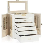Large 6-Tier Jewelry Box Lockable Leather Jewelry Storage Case with 5 Drawers...