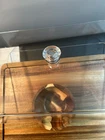 Large acacia wood Food Tray, Charcuterie Board With Dip Bowl And Acrylic Cover . Beautiful item in excellent condition. Board measures 17 inches long , 12.75 wide. Bowl is stationary and measures 3.5 inches tall, 5 wide, and 2.25 deep. The cover is 4 inches tall, 15.25 long and 11 wide.