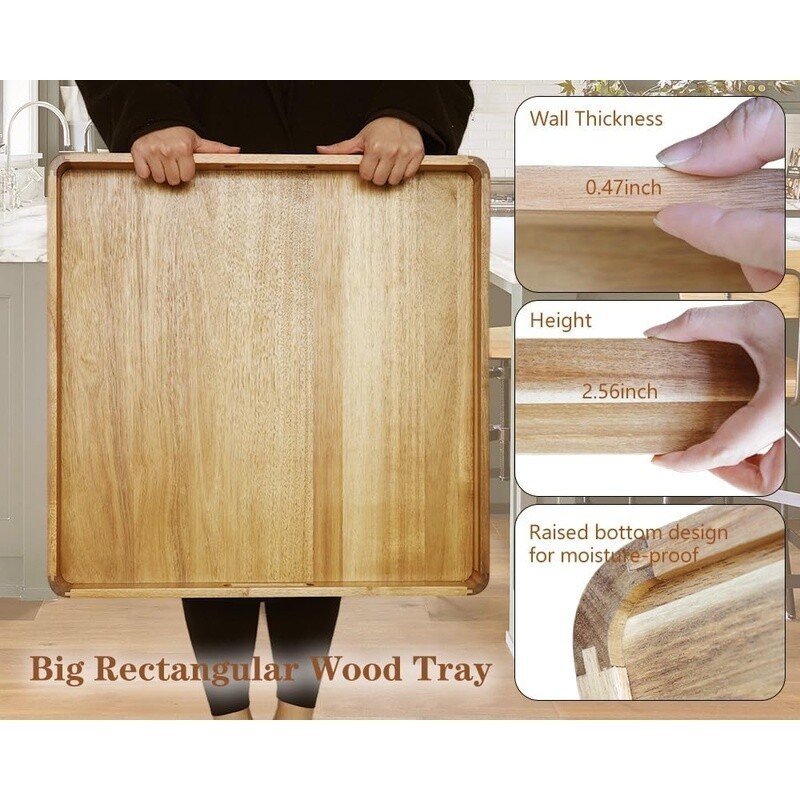 You may also like Silicone Coffe Maker Mat Non Slip Waterproof Heavy Duty Countertop Tray Matte US 25.82 USD 27.18 USD Free shipping 5% off About this item 【22" Giant Wood Serving Tray】Up your large dinner party with this big rectangular wood serving tray. And it measures 22" to give you plenty of space to serve a variety of dishes, or event props. With 2. 56" high wall, you dont worry about items slipping out when working. Decorative serving tray brings function and style to your everyday meals and entertaining. 【R-Shape Corner Large Square Wooden Tray】For safer use, this great serving tray is designed with R-shaped corners, which also looks more aesthetically pleasing. Unlike sharp right angles of other square trays may pose a safety hazard. Built-in handles make moving it around easier. 【Natural Huge Acacia Wood Tray】Our large wood serving tray is made of solid acacia wood surround wall and veneered acacia bottom, which healthy, durable and beautiful. Coated with a varnish protective layer, the surface of the large size square pallet is more beautiful and smooth, while also food safe. 【Multifunctional Ultra Generous Rectangular Tray】Ideal for eating, working, decorating and storing, this multi-functional foursquare serving tray is either serving cheese, fruits & drink or organizing displaying your favorite home goods like display candles, candies, books, bar ware etc. The anti-moisture design used on the bottom of the tray which will be more durable and last longer. 【Maintenance & Service 】To preserve big tray beauty, We recommend drying with a damp cloth and drying it thoroughly. Brand: Color: Acacia Wood Material: Acacia Wood Product Dimensions: 22"L x 22"W x 2. 56"H Shape: Rectangular You may also like Insect Trap Refill Cartridges Flying Insects Mosquito Gnat Fruit Fly Non-Toxic 25.9 USD 27.26 USD Free shipping 5% off Hanging Shower Caddy Rust Resistant Lock Top Steel Storage Organizer Bathroom US 35.16 USD 41.37 USD Free shipping 15% off Outdoor Moss Mold Mildew Algae Stain Remover Ready to Use No Scrub Cleaner 44.87 USD 52.79 USD Free shipping 15% off Compact Folding Snow Shovel Telescoping Utility Heavy Duty 40 Inch Emergency New 60.91 USD 64.12 USD Free shipping 5% off Framed 3-Shelf Bookcase Adjustable Storage Unit Perfect Home Office Bedroom New 41.16 USD 43.33 USD Free shipping 5% off Low VOC Interior Paint Good Washability Fast Drying GREENGUARD Certified Walls 29.08 USD 34.21 USD Free shipping 15% off Infinity Power Toothbrush Battery Operated EasyFlex Head Plaque Removal New 29.76 USD 35.01 USD Free shipping 15% off Garlic Marinara Sauce Gluten Free Pasta Sauce 24oz Meatloaf Lasagna Chicken New 19.29 USD 27.56 USD Free shipping 30% off Textured Chenille Blackout Curtain Panel 100% Blackout Privacy Light Control New 36.58 USD 38.51 USD Free shipping 5% off Eco-Friendly Cotton Tencel Bath Towel Plush Absorbent Textured Stripe Loop New 24.81 USD 26.12 USD Free shipping 5% off Lightweight Clumping Cat Litter Garden Bloom Scent 14 Day Odor Control New 28.38 USD 33.39 USD Free shipping 15% off Canned Mandarin Orange Slices in Light Syrup Non-GMO Vitamin C Snack 110 Cal New 49.77 USD 62.21 USD Free shipping 20% off
