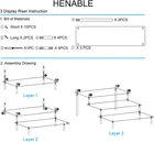 Keep things organized: Acrylic display risers can keep your things organized, saves space. You can find them quickly and easily, no more searching messy drawers, all of your things. Acrylic risers for display shelves are easy to place, fit on your dresser, table organization, funko pop display case, and are also suitable for all colors or themes of the room Display More Things: SIZE: Every acrylic panel is 11.6 IN long and 3.0 IN wide, the height of each tier is 1.9 IN, the total height is 5.7 IN. 3 tier cupcake stand is simple design and solid. Acrylic cupcake stand 3 tier features 3 layers that provides enough space to cologne perfume, cosmetic, skincare lotion, Amiibo Funko POP Figure, dessert, cupcake risers, collectibles and etc Ideal Presents Choice: Acrylic shelf riser is ideal presents for your better half, girlfriend, daughter, mother and friends in many kinds of festivals, such as Valentine's Day, Mother's day, Wedding, Thanksgiving, Birthday, Anniversary, Christmas, New Year and etc Quickly Easy to Assemble: Acrylic perfume stand organizer is clear material, quickly easy to assemble and sturdy in the state of tightening screws. Perfume organizer for dresser also easy to clean, easy to disassemble and store What You Get: Acrylic stand riser include 1 X 3-tier display stand, 1 X Phillips Screwdriver, 1 X Specification Product Description Perfume Organizer/ POP Figure Display Stand/ Cupcake Stand/ Shot Glasses Display/ Lotion Organizer/ Cologne Organizer/ Spice Rack Organizer About HENABLE Acrylic display risers • HENABLE is a company with many years of design and processing of all kinds of hardware products, and has a solid and experienced design and production team. Our designers have an average of more than 10 years of industry experience. • Its products have been exported to many countries around the world. The primary products sold are a variety of display shelves and related products, with a focus on the display of retail end products of major brands, display cabinets for branded products in need of promotion, risers display and other products. • Clear perfume organizer makes it easier and faster to find the perfume you need, no longer worry about messy desktops. Advantage 3 tier cupcake stand • HENABLE Clear Acrylic Shelf Risers for Display is worth having, it can help you keep your things in order and display, saves you time. The 11.6 x 8.0 X 5.7 IN cupcake stand 3 tier can hold 12 pcs 2.5 IN cupcakes. • Acrylic Perfume Stand is made of acrylic, high clear material with a simple structural design that is not prone to deformations and is solid. • The four holes on each plate are bellmouth orifice, which are not higher than the surface of the plate when the screws are locked to prevent the screws from hitting other things Easy to Assemble • In order not to scratch during transportation, Acrylic Shelf Risers are protective films on both sides of the bottom plate of the display frame. Keep Screw Hole Slot Side Face Up. • Perfume Stand Organizer size: Every acrylic panel is 11.6 IN long and 3.0 IN wide, the height of each tier is 1.9 IN, the total height is 5.7 IN. • Acrylic stand riser include 1 X 3-tier display stand, 1 X Phillips Screwdriver, 1 X Specification.