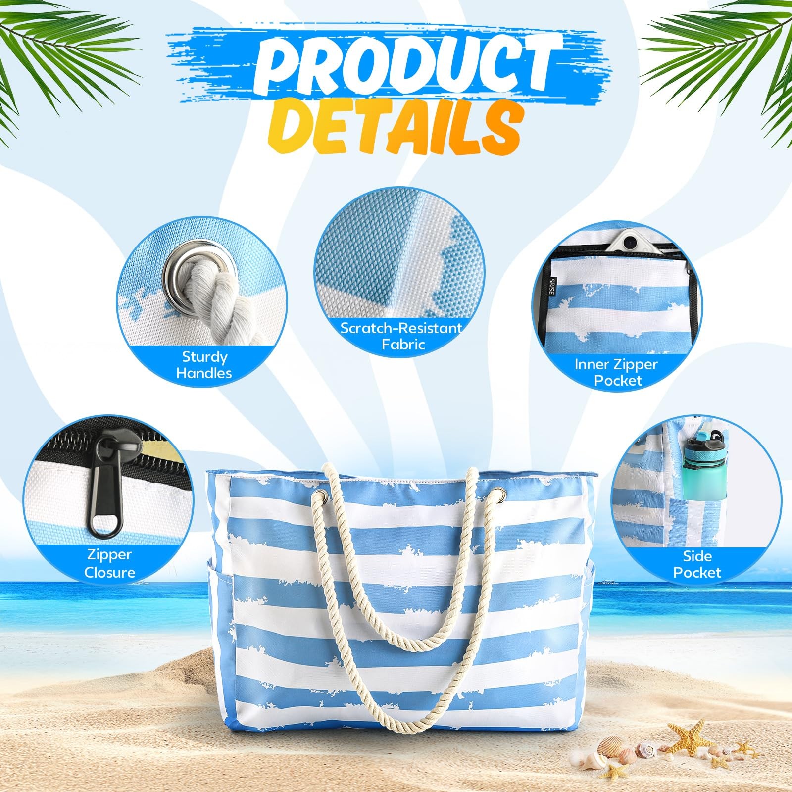 Large Beach Bag For Women & Men Beach Bags Waterproof Sandproof Travel Tote Bag Large Capacity:This beach bag boasts an extra-large design, effortlessly storing 4-6 beach towels, clothes, shoes, sunscreen, water bottles, and toys. It can also accommodate many daily necessities such as phones, sunglasses, cosmetics, wallets, A4 magazines, laptops, and more, making it a must-have large beach tote bag for family trips. Perfect as a beach bag, travel bag, pool bag, or shopping bag, it’s your go-to beach essential for vacations, pool parties, and weekend getaways. Portable & Practical Design:Lightweight and foldable, this beach tote bag features a top zipper closure, comfy shoulder straps, and side water bottle pockets. The built-in zippered pocket keeps your beach accessories organized, making it ideal for the beach, gym, or daily travel. Its compact design ensures easy storage, and this portable beach bag makes your travel easier." Durable & Waterproof:Made of high-quality materials,this waterproof beach bag outperforms ordinary totes with its lightweight yet sturdy build. The beach bags waterproof sandproof design shields your belongings from sand and water, making it a reliable choice for beach days, poolside lounging, or rainy outings. Applicable In Multi-Scenario:Beyond beach vacations, this beach bag is perfect for gym sessions, shopping trips, picnics, camping, and yoga. Its classic design is both fashionable and versatile, making it an ideal choice for women's daily travel. Whether it's work, travel or leisure, this versatile beach bag can meet your needs. Summer Vacation Essentials:This beach bags is specially designed for summer, and is a must-have item for beach vacations, pool parties, picnics and camping. Its lightweight, durable and stylish features allow you to easily enjoy every moment in the hot summer. Whether it is used as a travel bag, pool bag, shopping bag, or daily use, it is your perfect choice. beach bag Shipping We offer FREE shipping on all orders! We ship within Three business days of payment, usually sooner. We use a selection of shipping services such as UPS, FedEx, USPS etc. We only ship to the lower 48 states, no APO/FPO addresses or PO Boxes allowed. Local pickups and combined shipping options are not provided at this time. Return You can return a product for up to 30 days from the date you purchased it. Any product you return must be in the same condition you received it and in the original packaging. Please keep the receipt. Payment We accept payment by any of the following methods: PayPal Please pay as soon as possible after winning an auction, as that will allow us to post your item to you sooner! Feedback Customer satisfaction is very important to us. If you have any problem with your order, please contact us and we will do our best to make you satisfied. Contact Us If you have any queries, please contact us via ebay. We usually respond within 24 hours on weekdays. Please visit our eBay store to check out other items for sale! Thank you for shopping at our store.