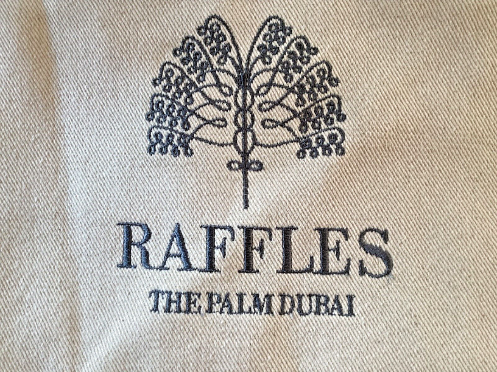 Brand new from the fabulous Raffles Dubai hotel. Large tote bag, perfect for summer outings. White satin polyester lining. Rope handles with sturdy metal rings to prevent breakage. Width 18 inches, length 18 inches. 3 1/2 inches across the bottom. Stylish accessory for beach days or around the pool. Also brand new Raffles beach thongs in white ribboned travel pouch. Medium fit , size 7 to 9. Great deep turquoise colour with pretty palm tree pattern. Longtime eBay seller with a 100% customer satisfaction rating.