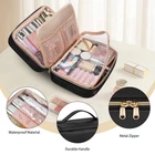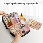【Large Capacity 】- Cosmetic Bag size:9.92*3.93*7.0(in). The spacious makeup organizer bag can hold your full-sized cosmetics and brushes, make up tools, toiletries, shampoo, conditioner, toothbrushes or travel essentials.Easy storage and orderly 【CONVENIENT DESIGN 】 - Wide-open design makeup bag brings a easier way for you to take your cosmetics. Waterproof PVC transparent window is convenient to view the items, but also can well protect cosmetics.Top leather carry handle is easy to carry. High quality double-way zippers make this cosmetic bag easy-pulling 【MULTIPLE STORAGE COMPARTMENTS 】 - The makeup bag has two main compartments, a separate board for makeup brushes, has elastic sots and two mesh pockets , and multiple compartments to keep your cosmetics organized. The waterproof lining makeup bag is easy to clean, and you'll never have to worry about your bag or items getting dirty again 【HIGH-QUALITY】- Make up Bag is made of high-quality PU leather fabrics,also waterproof inside and outside.The Makeup Bag interior is covered with thick sponge and PVC to protect the cosmetics at all times,dirt resistant,easy to clean as well ,the material is Durable and has no peculiar smell.PERFECT gift for girl, women,men or families on Christmas,Thanksgiving,Valentine's Day.Suitable for your family trip to pack all men, women toiletries 【MULTIPURPOSE MAKEUP TRAVEL BAG】 - Every detail of our travel makeup bag is delicately made, giving you a high-quality using experience which will last for a long time.This makeup organizer bag can be used as a cosmetic travel bag, a toiletry bag a travel pouch or a daily storage bag