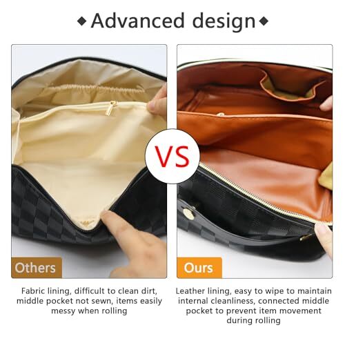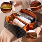 $ 10.69Large Brown Checkered Makeup Bag Spacious Travel Organizer White Trim