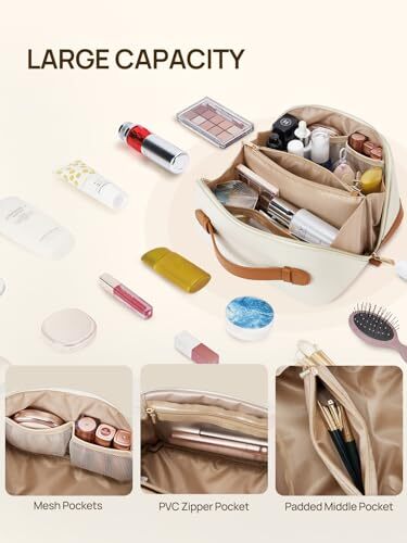 30 Days Return Policy Fast Delivery Trusted seller Makeup Bag Large Capacity Travel Cosmetic Bag Portable PU Leather Water Resistant Makeup Organizer Bags for Women with Handle and Divider Open Flat Beige with Brown Product Description Large Capacity: The size of the cosmetic bag is 9.84x4.72x4.72inch, with two main compartments, two small elastic pockets on the side for storing small items, a large elastic pocket on the other side, and a fixed zipper pocket in the middle. The multi-functional design of the cosmetic bag meets all your makeup/skincare/toiletry needs. Extra large capacity to meet daily use or travel Water-resistant & Smooth Zipper: Makeup bag is made of high quality water-resistant PU leather, more solid and shaped. Easy to clean and can effectively prevent the internal items from moisture. Cosmetic bags for travel with woven pattern, color clash design is stylish and durable. A variety of colors to choose from is a great choice for a variety of holiday gifts Large Opening & Bottom Tab Strap Design: Our travel makeup bag feature a large opening flat design for quick access to your items. The bottom side tabs are designed to ensure that the zipper works smoothly Portable & Multipurpose: PU leather carry handle is comfortable and portable. Can be used as a cosmetic travel bag, toiletry bag, skin care bag, travel bag or daily storage bag. Help you to better organize various necessities. At the same time, this makeup bag organizer is stylish and practical is the best gift for Valentine's Day, Mother's Day, Thanksgiving, Christmas and other special holidays Product Service: provides our customers with prompt response and the best after-sales service, aiming to solve any problems when using our products. If t are any questions or concerns, please contact us and leave a message, we always reply within 24 hours Shipping Returns Payment Shipping Shipping is FREE to all addresses other than APO/PO boxes in the lower 48 states. All our stock ships from US-based warehouses. Shipped via USPS or UPS (depending on location and package weight) Unless stated otherwise, all orders will ship within 24-72 hours of your payment being processed. Check our feedback to see the great reviews of FAST shipping we offer. Returns As our valued customer, we will do our best to make sure the product you receive arrives to you on time and as expected. If you are not satisfied with your purchase, please contact us within 30 days of receiving your order to process a return. Payment We currently accept payment via eBay managed payments only. Once payment is cleared, we will dispatch your shipment within 1-3 business days. Please refer to the "Shipping" tab for more information regarding shipping speed to your destination.