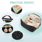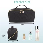 Makeup Bag Cosmetic Bag, Large Capacity Travel Makeup Bag for Women with Portable Pouch Open Flat Water-resistant Toiletry Organizer Bag with Handle Divider(Black) Product Details Color: Black Brand: Bunnychill MPN: HZB03-1 UPC: Does not apply EAN: Does not apply Product Dimensions: 11.2 x 6.2 x 5.9 inches Item Weight: 5.3 ounces Department: Unisex Adult Manufacturer: Bunnychill Country of Origin: China Item model number: HZB03-1 With Movable inner bag,Large capacitySize: 9.4" L x 4" W x 4.7" H. A new movable inner bag is added inside (inner bag size :8" L x 2.5"W x 3.5"H), which can be used alone or in combination, and can accommodate more travel cosmetics and skin care products Middle fixed upgrade designThere is a brush storage bag in the middle, which can place cosmetic brushes.The middle brush bag of the cosmetic bag is fixedly connected with the bottom with Velcro which truly realizes that the cosmetics on the left and right sides do not move and are stored in different area 180Wide opening, partition storage There are 2 storage compartment on the left and right sides, which can place large cosmetic products. There are have 2 small storage bags on both sides, perfect for storing all your travel size toiletries and accessories. The large opening is convenient to use and clear at a glance Versatile FeaturesMakeup bags for women are equipped with a handle, two-way zippers, The fabric is made of high quality splash-proof polyester fabric, soft, lightweight and sturdy, so you don't have to worry about water splashing on the cosmetic bag when you use it, water-resistant and washable Multipurpose Travel BagMakeup organizer bag can be used as a cosmetic travel bag, a toiletry bag a travel pouch or a daily storage bag; it can be used by any person and can store various small items in all aspects. It's also a ideal present for birthdays, anniversaries, Valentine's Day, Mother's Day, Women's Day, Christmas, to those who always in travel