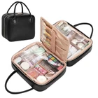 Large Capacity Makeup Bag: Measuring 9.9inch x 5.3inch x 8.5inch, the makeup bag provides ample space to accommodate full-size cosmetics, toiletries, makeup brushes and travel essentials, detachable partitions can meet different storage requirements and keep them organized and tidy. Easier Access Design: The large opening design allows the bag to be opened quickly, making it easy to take out and store items. Waterproof transparent PVC allows you to see all of your makeup, internal partitions prevent cosmetics from moving. Portable handles, easy to carry. Multi Compartments Storage: Travel cosmetic bag has two large main compartments and one separate makeup brush board, which one side has 4 makeup brush slots and transparent PVC cover to protect your brush from dust, two mesh pockets of another side can hold small items. The bag comes with four detachable flexible partitions, can adjust space as needed for better organization of items. High Quality Material: Made of high-quality PU leather, thick nylon lining and PVC material, which can effectively protect your cosmetics during transportation, the waterproof lining make it easier to clean. Smooth two way SBS zipper for easy to access. Multi functional Make Up Bag: This bag is a makeup organizer that combines functionality of cosmetic bag and toiletry bag. It has a rich and practical structure, making it very suitable for daily use, outdoor activities, vacations, business trip and traveling. It is also an ideal gift for family and female friends.