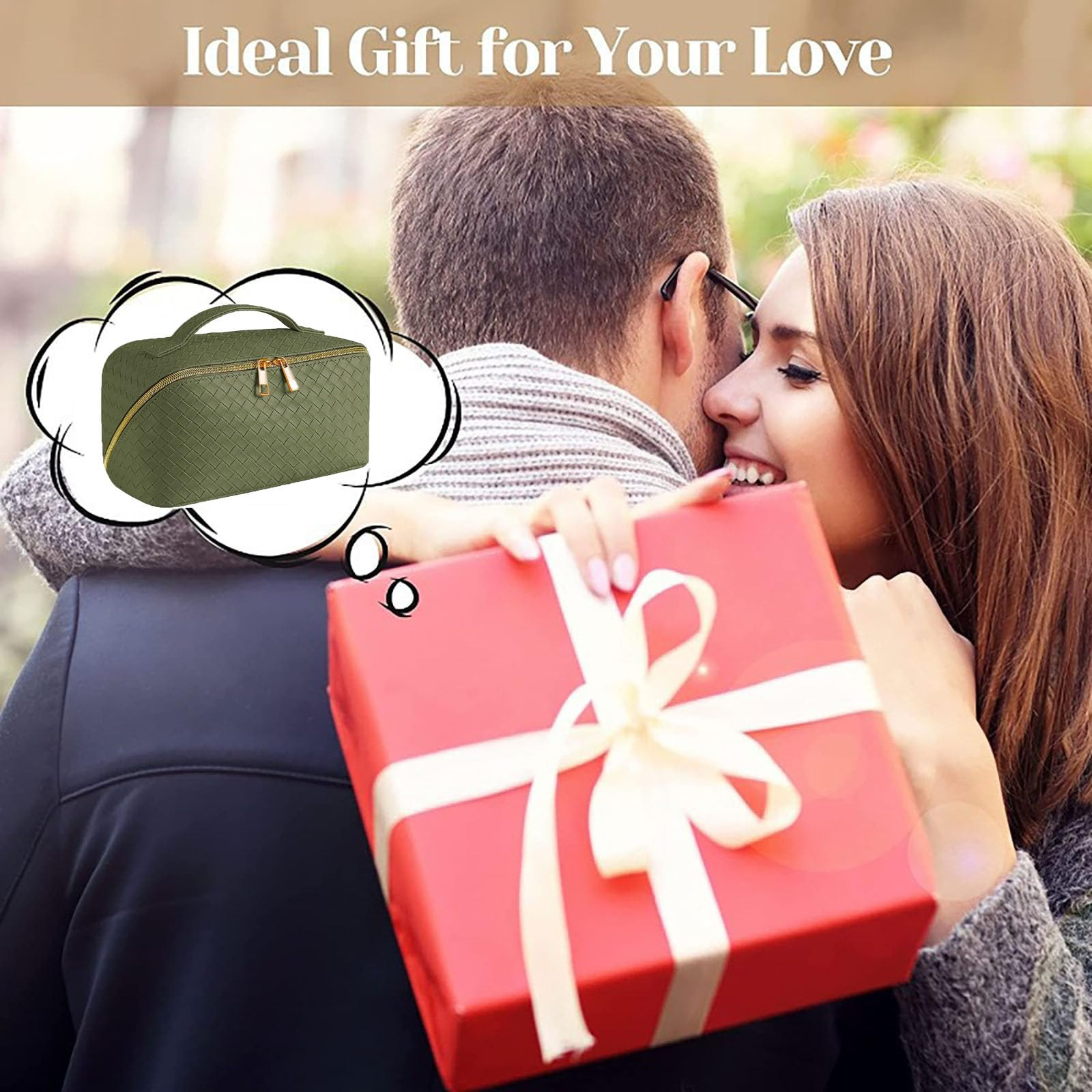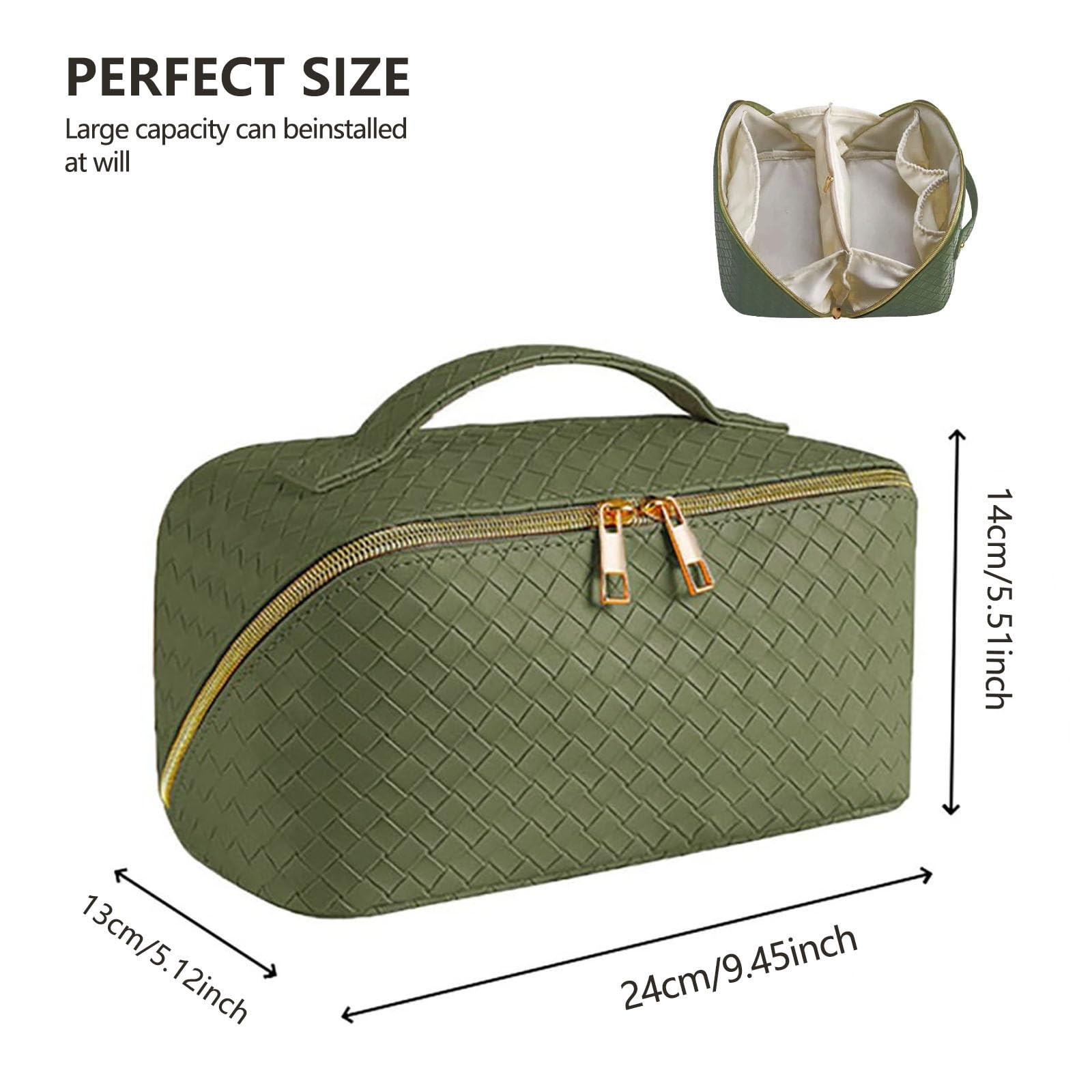 High Quality:Makeup bag is made of high quality PU leather on Inner lining and outer.More durable and easy to clean, water-resistant surface to prevent internal products from getting wet Large Capacity:The size 9.84*5*5 inch. 2 large compartment easily holds travel toiletries or skin-care products. Tow Side pockets hold small items.And the Middle pocket for makeup brushes Full Opening Design: It’s 180 degree open-flat design makes. Effortlessly access all your makeup in an instant.Makeup bag Comes with a reinforced handle on the top of the bag,easy to carry Multifunctional:It not only as a cosmetic bag and toiletry bag,but also Jewelry,Camera, Essential oil, Shaving Kit,glasses,Valuable objects storage bag.Suitable for home,outdoor,travel Best Gifts:Elegant cosmetic bag.It is an excellent gift for mothers, friends, family, wives.An ideal present for Mother's Day, Valentine's Day, Christmas, Thanksgiving and more holidays