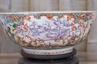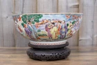 Large Chinese Famille Rose Canton Bowl with Stand 26cm Diameter. A section of the vase is restored please refer to photos. The bowl still displays very well overall and is very finely painted. Otherwise in good antique condition in commensuration with age. Images depict the object better than words can. Please thoroughly review all of the photographs as we do not accept returns. Additional Photos available upon request. All things are properly wrapped and shipped worldwide using reliable international delivery methods. Any import taxes or tariffs must be paid by the buyer. Please contact for more additional information. Please use your own judgement for the items age and era.