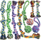 🐶【Most Complete and Value Dog Rope Toys Set】Designed for medium and large dogs.Larger, thicker, and more durable than other toys. Includes (20 inch) 4-knot long rope, (24 inch) 5-knot long rope, Two 19-inch heavy-duty tug-of-war dog toys, Two hand-held round rope ball dog toys, Two 2-KONT ropes, and One ball toy. The variety of styles and bright colors can stimulate the dog's senses and encourage the dog to play actively and be mentally engaged. 🐕【Dog Rope Toy For Aggressive Chewer 】Durable dog chew toy set is made of high-quality natural cotton, tightly woven, wear-resistant, and sturdy construction allowing the dog toy to withstand rough play and aggressive chewing. Say goodbye to flimsy toys that easily fall apart. 🐶【9 PCS Multi-Style Design 】Multiple styles and colors for dogs to choose from. Whether your dog likes to chew, chase or tug, our rope toys have it covered. Its versatile design allows for a variety of play styles. And is suitable for dogs of all sizes and great for playing outdoors or indoors. Allow your dog to find fun in interactions, reduce your dog's boredom, and improve your relationship with him. 🐕【Safe and Protect Dental Health】GASAPET Dog toys are woven from 100% high-quality washable cotton material. Safe, non-toxic, and free of harmful chemicals. It can keep your dog's teeth clean and healthy with our rope toy. The textured surface helps to massage gums and remove plaque and tartar buildup as your dog chews and plays, promoting better dental hygiene and fresher breath. 🐶【Best Gifts for Dogs】Colorful and multi-style design, is perfect as a birthday and holiday gift for your dogs. It's more than just entertainment, it's also a means of exercise that helps keep our canine companions healthy. Dog rope toys are consumable and not truly indestructible. If your dog is a very aggressive chewer, we recommend play with supervision. If you are not satisfied with the use, you can contact us at any time and we will respond within 12 hours. Product Description Most Complete and Value Dog Rope Toys Set Designed for medium and large dogs , also suitable for aggressive chewer s. Multiple styles and colors for dog to choose from. Whether your dog likes to chew, chase or tug , our rope toys have it covered. Its versatile design allows for a variety of play styles . And is suitable for dogs of all sizes and great for playing outdoors or indoors Includes and dimensions: One 5-knot long ropes (24 inch) One 4-knot long ropes (20 inch) Two heavy-duty 3-kont double ropes(19 inch) One hand-held round rope ball(15.7 inch) One round rope ball(7.8 inch) One ball toys (3.2 inch) Two 2-kont chew ropes (11.8 inch) .