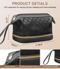 【7.6 L Extra Larger Makeup Bag】For more storage needs, cosmetic bag increases 30% larger space - 7.6 L EXTRA large capacity for women and girls (Size is 10.4*6.1*7.7 inches). And the anti-slip plaid outer pattern is different from the other makeup bags, look more elegant and fashionable. It is also a multifunctional bag - can be used as make up bag, travel bag, skincare bag, toiletry bag, bathroom bag, jewelry bag and handbag ect. 【Double Layer Toiletry Bag】The make up bag is divided into upper and lower storage areas. Larger opening design of upper layer main areas with built-in iron bars secures the toiletry bag very well, making it easy to quickly access the cosmetics and tools you need. The lower layer has 5 separate makeup brush areas and extra stretch storage area. And the clear brush cover can keep your brush dry and clean, preventing powder flying into air. The makeup bag can make them organiazed enough 【Thickened Leather & Bottom Sponge】The toiletry bag is made of superior waterproof and thickened PU leather. It is easy to clean and can effectively prevent the internal items from moisture. The bottom cushioning sponge protect internal cosmetics better, and sturdy Zipper silkier to use and more delicate to the touch that supply variety of colors for women and girls to choose from 【Portable Travel Make Up Organizer】Multifunctional travel makeup bag with carry handle and brush holder, it allows for versatile uses, such as be a cosmetic travel bag, toiletry bag, skin care bag, travel bag, or daily storage bag. It helps to effectively organize various necessities of makeup 【Present For Women And Girls】The stylish and practical makeup bag organizer makes the ideal present for daily use, or for special festivals