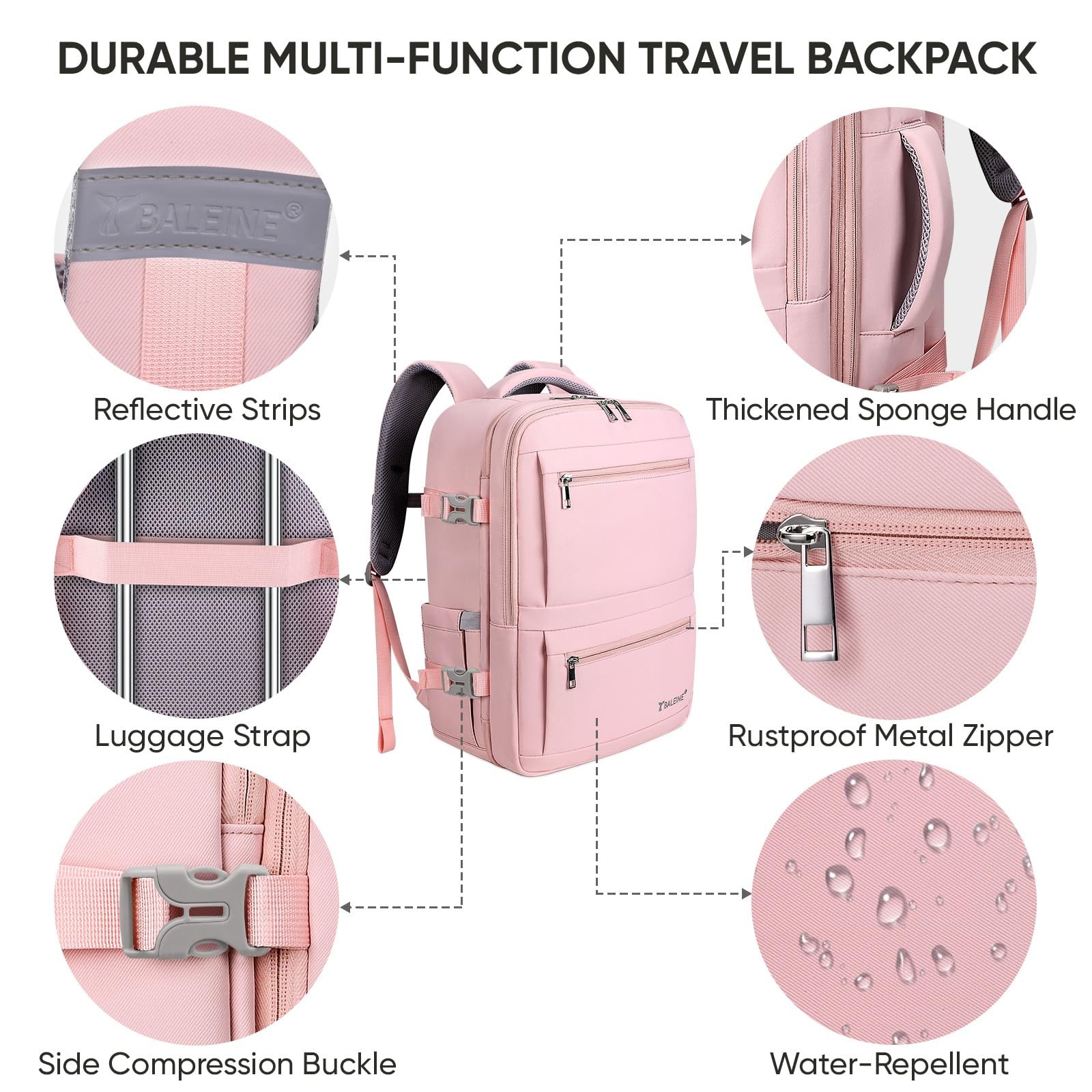 The backpack for traveling on airplane is a lightweight, spacious, and versatile large capacity backpack designed for the modern traveler; The under seat bags for airplanes come in two sizes: L (17"x12.6"x8"), weighing 1.5 lb, with a 28 L capacity, and XL (20"x13.7"x11"), 2.2 lb, 40 L capacity, expandable to 48 L, and the carry on backpack for airplanes is designed with multiple pockets for easy organization of essentials such as laptops, pens, textbooks, wallets, clothes, shoes, and water bottles. The men's travel backpack breathable mesh and foam shoulder straps reduce stress on the shoulders, and the integrated waist buckle minimizes back strain; This travel backpack carry on flight approved backpack features a 180-degree zippered opening for quick clearance through airport security. Perfect for both men and women, this travel back pack is a must-have in your travel gear Large Capacity: The travel laptop backpack comes in two sizes: L (17"x12.6"x8"), weighing 1.5 lb, with a 28 L capacity, and XL (20"x13.7"x11"), 2.2 lb, 40 L capacity, expandable to 48 L; This backpack for travel offers a large capacity with dedicated spaces for your laptop, books, wallet, clothing,and other essentials; The multi-pocket design ensures that your items are organized and easily accessible Ergonomic Design: Crafted from durable 600D dulling twill, this suitcase backpack features a waterproof outer layer and breathable mesh back with sponge shoulder straps to relieve shoulder pressure; The waist buckle provides added stability, while the extended adjusting straps on the shoulder pads make it easy to customize the fit; The thickened sponge lining in the laptop compartment protects against collisions, making it a perfect choice for both women's business trips and men's laptop storage Convenience Design: This large travel backpack comes with a 180-degree zipper opening, facilitating quick passage through airport security; Luggage backpack compact design is suitable for overhead compartments and under-seat storage, making your travel experience seamless and hassle-free Multifunctional Use: Whether you need a handbag or a backpack, this big backpack is suitable for both uses; It can be used as a duffel bag, travel backpacks, teacher's bag or nurse's bag, mommy bag, gym bag, carry on bag; It is ideal for weekends, traveling, college or daily work, and it is also a great birthday, holiday gift for your friends and family; Note: Carry-on dimensions may vary by airline. Please check with your airline's regulations to ensure compliance Quality Commitment: stands behind the quality of our products; If for any reason you are not satisfied with your purchase, please contact us; We provide 30-day money back guarantee; 100% Satisfaction for risk-free shopping
