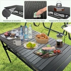 Product: Aluminum Folding Camping Table with Storage Color: Black/Sliver/Natural Open Size: 55.1*27.5*27.5 inch Fold Size: 34.53*10.23*10.23 inch Weight: 18.74Ib Max capacity: 176 Ib Material: aluminium alloy Frame:steel tube Package Includes: 1*camping table+1*Mesh storage bag+1*Carry bag Suitable for: Camping,beach,picnics,garden,picnic,BBQ,party,backyard Features: waterproof, rust resistant, corrosion resistant, large storage space, foldable, easy to carry Suitable for 4-6 people:camping table measures 55.1*27.5*27.5 inches when unfolded and 35.4*10.2*6.3 inches when folded. It weighs 18.74 pounds. It can accommodate 4-6 people and is suitable for family and friends gatherings. Make sure there is enough room for everyone to eat together and have a good time. Sturdy:The top of the folding table is made of premium aluminum for portability, easy to clean. The table legs are made of sturdy steel pipe, use X frame to make the table more stable, providing enough support to carry up to 176 pounds. Extra storage space:This outdoor camping table comes with an extra mesh storage bag, providing more space to hold snacks, kitchen gadgets, books, and other items you might need. And when you don't need it, it can be quickly disassembled and stored away. Fast folding design:The folding design of the aluminum table makes it easy to set up and take down. The legs can be opened in a second with no effort. No tools are required for assembly, and you can build a stable folding table in no time. Portable and easy to carry:The Folding Camping Table is perfect for outdoor activities, such as camping, traveling, and beach outings, as well as indoor use. Made of lightweight aluminum alloy, this table is portable and easy to carry around thanks to its attached tote bag. It won't take up too much space in your car.