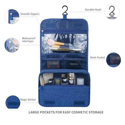 Return Policy Fast Delivery Trusted seller Large Capacity Toiletry Bag Travel Bag with Hanging Hook for Men and Women Waterproof Travel Cosmetic Bag Bathroom Storage Bag for Brushes Set,Mens Bathroom Bag Accessories-Navy Blue Product Description LARGE CAPACITY: folded size of the toiletry bag is 9.7x6.8x0.39 inches, the unfolded size is 9.7x4x16.7 inches, and it weighs 0.49lbs, which is suitable for your family trips to pack all kids, men and women toiletries High QUALITY FABRIC: The toiletry bag is made of newly upgraded cationic 300D fabric, the surface is waterproof, wear-resistant, durable and practical. The toiletry bag can be hung on towel racks, coat racks and anyw else available to save much space MULTIPLE STORAGE COMPARTMENTS: It's easy to separate wet and dry items because of internal design waterproof compartment. Put your lipsticks, compressed towels and so on in two mesh pockets. Body washes, shampoos and other bulky items can be put right into the bag. Don't worry your items will spill, because t are dividers inside PRACTICAL OCCASIONS: This toiletry bag is convenient to carry toiletries, cosmetics, etc. It is suitable for business trips, home travels, gym showers, swimming, outdoor activities and so on After-sales Guarantees: We pursue customer satisfaction shopping experience, if you have any questions, please contact us. We will reply in 24 hours Shipping Returns Payment Shipping Shipping is FREE to all addresses other than APO/PO boxes in the lower 48 states. All our stock ships from US-based warehouses. Shipped via USPS or UPS (depending on location and package weight) Unless stated otherwise, all orders will ship within 24-72 hours of your payment being processed. Check our feedback to see the great reviews of FAST shipping we offer. Returns Seller does not accept returns Payment We currently accept payment via eBay managed payments only. Once payment is cleared, we will dispatch your shipment within 1-3 business days. Please refer to the "Shipping" tab for more information regarding shipping speed to your destination.