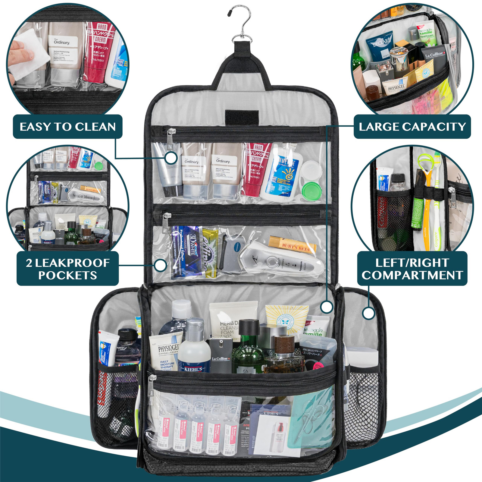 Large Hanging Toiletry Bag for Travel, Cosmetic Organizer, Water-Resistant, for Men and Women