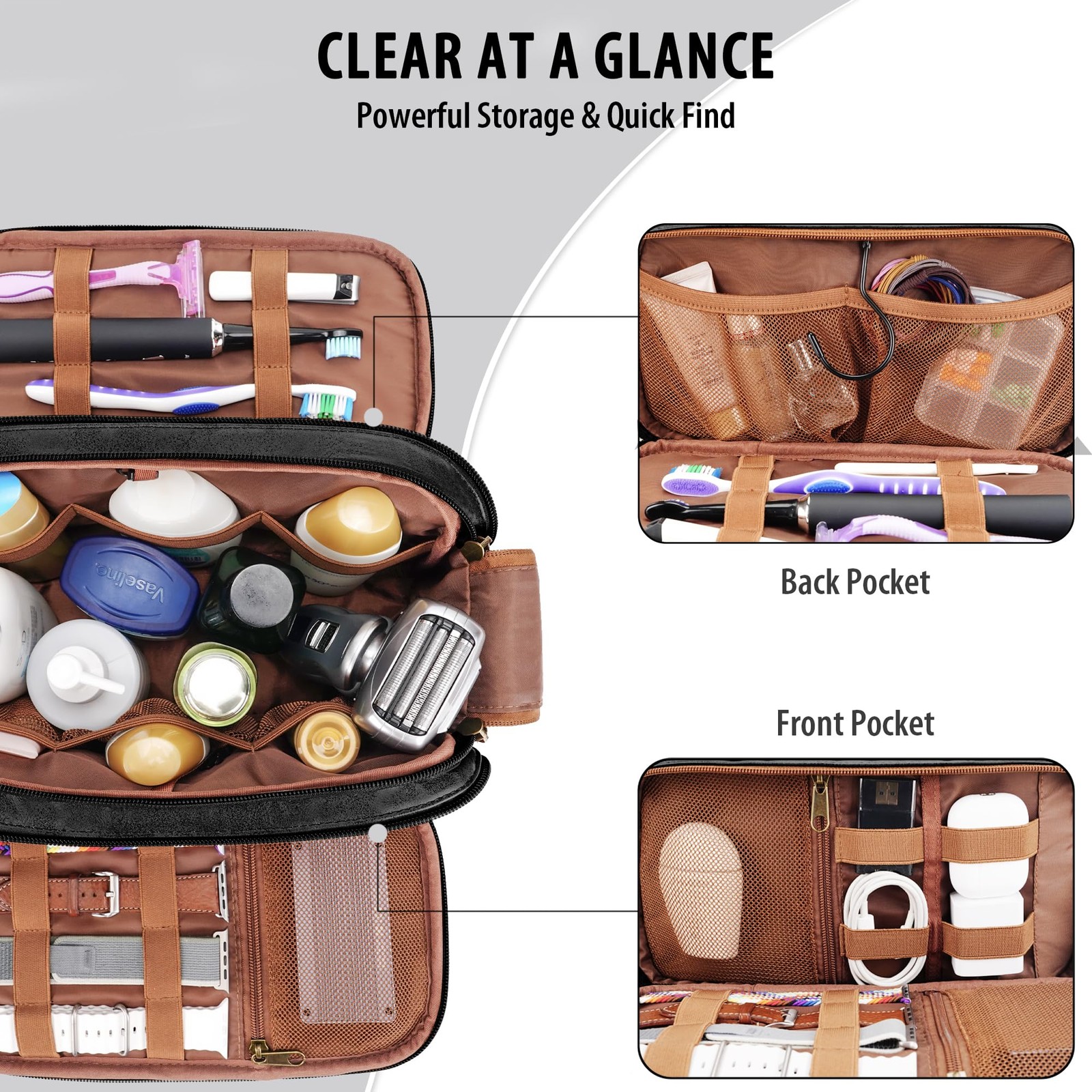Travel Toiletry Bag for Men, Large Hanging Toiletries Organizer Bags for Women, Cruise Ship Essentials, Water-resistant Shaving Case, PU Leather Makeup Accessories, Cosmetic Dopp Kit, Black PRODUCT DESCRIPTION 0 PRODUCT FEATURES POWERFUL ORGANIZATION - SIZE: 10.5 x 6.5 x 6.3 IN. it has three organizer compartments and a wet/dry pocket. The main compartment holds larger toiletries such as shampoo, face wash, toothpaste, razor, etc. The front and back compartments can hold makeup brushes, toothbrushes, nail clippers, medications. Even chargers, power bank, cables, apple watch bands, etc. It is essentials for your family traveling to pack toiletries for men, women and children. EXCELLENT DESIGN - Double zippers with large openings make it easy to see what's inside at a glance. The main pocket comes with elastic pockets on both sides to keep the bottles upright,avoid bumping into each other. EASY TO USE - It comes with a metal hook that can be rotated 360° and can be hung anywhere, saving space on your desktop.PU leather carrying handle, easy to carry. MATERIAL CHARACTERISTICS - Made of waterproof PU leather, soft, sturdy and durable. The lining is made of 210D polyester,which can give your toiletries the best protection. VERSATILE - It's lightweight and easy to carry. Great for overnight stays, long trips, cruise trips and gym showers. In addition it is beautifully crafted and stylish, it is also a great gift for birthday and various holiday. 🚚 SHIPPING We offer fast and reliable shipping. Your order will be processed within 1-2 business days. International shipping is available to most countries. All items are securely packaged to ensure safe delivery. 🔄 RETURNS If you are not satisfied with your purchase, you can return it within 30 days for a full refund. Refunds will be processed to your original method of payment. Items must be returned in their original condition and packaging. 💳 PAYMENT We accept payment via PayPal, credit cards, and other payment methods supported by eBay. Please ensure your payment method is correct and updated to avoid any delays in processing your order. ⭐ FEEDBACK We value your feedback. If you are happy with your purchase, please leave us a positive review. 📞 CONTACT US If you have any questions or need further assistance, please feel free to contact us through eBay messages.
