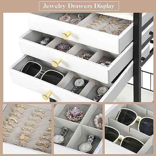 Return Policy Fast Delivery Trusted seller Jewelry Organizer,Large Jewelry Stand with 3 Jewelry Box Drawer, Jewelry Holder Necklace Organizer Earring Storage Jewelry Armoire with Display for Earring Necklace Ring Bracelet (Black) Product Description Jewelry Organizer Stand Gifts for Women: This exquisite, large-capacity jewelry organizer stand is very in line with women's aesthetic preferences. Our designers design according to the needs of women, which can store all kinds of commonly used jewelry and sunglasses. Be the finishing touch of your home life, a perfect gift for your daughter, girlfriend, wife, or mother on Valentine's Day, Mother's Day, Birthday, Christmas, and many other festivals Material Upgrade Jewelry Holder: Strong and stable metal structure body and high-quality wood. Using a better material necklace holder, the earring holder helps keep jewelry hanging safely, perfect for storing and organizing earrings, necklaces, rings, bracelets, and more. T are also three drawers with a non-woven design, which is more secure to protect your jewelry from damage Use Multi-situational Jewelry Organizer: Pure white is matched with low-saturation primary-color wood panels, and the entire jewelry holder has a very fresh and simple style. It is suitable for matching various decoration styles, can be placed in various places of the home, and can be used in multiple scenes. With its own wheels, it can also be moved freely to a place w you can easily pick up your jewelry, which is convenient for you to access Creative Jewelry Stand: We is an independent design company with the goal of making products that meet market demand, making our products more practical, and maximizing the use of space. Tfore, we have designed this creative jewelry organizer for women's preferences. This jewelry display holder can store all kinds of jewelry while storing all kinds of hair accessories, head accessories, and commonly used skin care products. Give full play to the maximum utilization value of the product 3-IN-1 Jewelry Organizer: Our jewelry organizer combines a necklace holder, earring holder, shelf, and drawer with multiple storage options. It meets the storage needs of different products and comes with a ring organizer to give your jewelry and skin care products a safe and comfortable home. It can also display your jewelry better so that you can have a clear view when you are looking for the jewelry you need to match today, giving you the most satisfying experience of using it All-Around Jewelry Protection: The jewelry organizer combines earrings, necklaces, bracelets, rings, watches, and skin care products in a single unit, designed with your jewelry and products in mind. Both the necklace and earring racks retain ample space, and the drawers are made of gentle non-woven fabric with additional compartments that can be freely combined to ensure that your jewelry does not collide. Our shelves are also designed with a fence so that your items will not fall easily Satisfied After-sales Service: Your satisfaction is our top priority. We are committed to presenting the best quality products and satisfactory services to our customers. To provide customers with 100% satisfactory service. If you have any questions about jewelry organizers, please feel free to contact us Shipping Returns Payment Shipping Shipping is FREE to all addresses other than APO/PO boxes in the lower 48 states. All our stock ships from US-based warehouses. Shipped via USPS or UPS (depending on location and package weight) Unless stated otherwise, all orders will ship within 24-72 hours of your payment being processed. Check our feedback to see the great reviews of FAST shipping we offer. Returns Seller does not accept returns Payment We currently accept payment via eBay managed payments only. Once payment is cleared, we will dispatch your shipment within 1-3 business days. Please refer to the "Shipping" tab for more information regarding shipping speed to your destination.