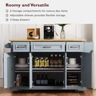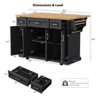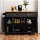 [Premium Quality & Versatile Style] Elevate your kitchen or dining room with our large rolling kitchen island, crafted to blend functionality with timeless design. Featuring a sleek black finish, embossed texture panels, and exquisite groove edges, this island seamlessly complements Classic, Coastal, Farmhouse, Luxury, and Modern interior styles—making it a statement piece that enhances any space. Constructed with CARB Phase II certified MDF boards and a solid Rubber Wood tabletop, this kitchen cart boasts exceptional sturdiness and durability. The thick rubber wood tabletop (47'' wide) offers a smooth, scratch-proof laminate finish that doubles as a convenient cutting board or stand for your microwave/roaster, supporting up to 400 lbs. Built to withstand daily use, it’s designed for long-lasting reliability. Key Features That Stand Out Fancy & Rustic Aesthetic : Refined black paint, intricate embossed texture panels, and vintage-inspired groove edges add timeless elegance and rustic charm, creating a captivating atmosphere in your kitchen. Space-Saving Drop Leaf Design : Perfect for small kitchens or spaces with limited room! The 11.8'' drop leaf folds down to save space when not in use and easily expands to provide extra workspace or serving area whenever you need it. Ample Storage Solutions : Keep your kitchen clutter-free with versatile storage options: 3 deep drawers for napkins, coasters, wine accessories, or small utensils; 4 doors that open to adjustable shelves (customizable to fit your needs); and a 47'' wide rubber wood top for easy access to frequently used items. Moveable & Stationary Flexibility : Equipped with 4 concealed 360° rotating wheels (2 lockable) for smooth mobility—easily move it around your kitchen or dining room, then lock the wheels to keep it securely in place. If mobility isn’t needed, you can skip wheel installation; the sturdy cabinet base supports up to 300 lbs without instability. Slow-Close Hinges & Practical Add-Ons : Features slow-close hinges to prevent slamming doors and protect little fingers; also includes a built-in spice rack and towel rack for added convenience. Specifications Item Details Country of Origin Vietnam Color Black Material MDF + Rubber Wood Tabletop Wood Type Rubberwood Assembled Dimensions (L×W×H) 54.10 × 29.50 × 35.90 inches Product Weight 121.04 LBS Tabletop Weight Capacity 400 LBS Shelf Weight Capacity 75 LBS Drop Leaf Weight Capacity 33 LBS Number of Doors 4 Number of Drawers 3 Estimated Assembly Time 40-60 minutes Packaging Information This product ships in 2 separate packages (total weight: 136.47 LBS) with the following details: Sub-product 1: N707P404588B | Package Dimensions: 35 × 20.43 × 7.32 inches | Weight: 41.89 LBS Sub-product 2: N707P404589B | Package Dimensions: 51.54 × 22.24 × 10.39 inches | Weight: 90.83 LBS Easy Assembly & Care No complicated tools needed! We provide comprehensive step-by-step assembly instructions, along with labeled parts and hardware, to ensure a seamless assembly process. If you encounter any issues during assembly, our customer support team is always here to help. Care Tips: Wipe clean with a soft dry cloth. Avoid harsh chemicals and household cleaners, as they may damage the finish. Periodically check and tighten hardware to maintain stability over time. Our Promise to You 1-Year Quality Warranty : We stand behind our product! Enjoy a 1-year warranty against manufacturing defects, ensuring your purchase is protected. 30-Day Free Return & Exchange : Not completely satisfied? Return or exchange your kitchen island within 30 days of receipt, no questions asked—we want you to love your new addition. Important Notes Color Variation: Actual product color may vary slightly from images due to lighting or monitor display differences. Measurement Error: Manual measurement may result in a small, reasonable error (within 0.5 inches). Whether you’re looking to add extra workspace, organize kitchen essentials, or elevate your home decor, this large rolling kitchen island is the perfect choice. Versatile, durable, and stylish—it’s designed to make your kitchen more functional and beautiful!