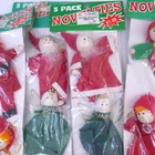 5 packs with 3 figures each (15 figures total) Made of fabric with wood heads Perfect for adding to wreaths, assemblages, etc See picture with dice for size