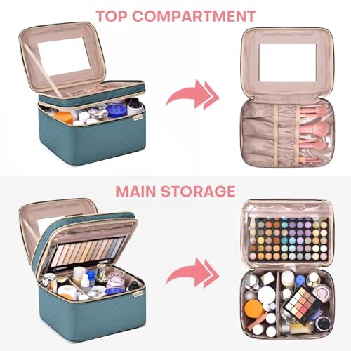 $ 17.11Double Layer Travel Makeup Bag Women Cosmetic Case, Organizer for Large Pink