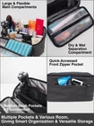【Everything Stays Ready】travel dopp kit large with a full-open access gives a high-visibility interior, let your toiletries easy and quick to reach. The smart toiletry bag stands flat and open, to better keep travel size accessories upright and well organized. Well-designed zipper line let opening and closing smooth with one hand, makes it easy, handy to use. 【Separate Compartment】travel toiletry organizer features a large 3D compartment on the top, built up with a visible, water-resistant lining and leak-proof zippers, dedicated to keep wet and dry items separated, such as towels, toothbrushes, shower poufs, and bath sponges. The top pocket can lay flat when it unfurls, 2 zippered accesses from both interior and exterior to keep everything ready to deploy. 【Built To Flex】The large main compartment contains a customizable divider that can be adjusted based on your loadout, helps to keep travel-size items upright, or large items lay flat to aid different builds. The built-in mesh zipper pocket gives extra visible storage to organize small essentials, such as swabs, dental flosses, cards, nail clippers, hair ties, and so on. 【Extra Storage】The interior of travel organizer is built with multiple mesh pockets of up to 8, which are flexible, pop open, and close down flat. These highly visible rooms are used to well organize different accessories. The front exterior zipper pocket also offers quick access on the go. 【Good Materials】dopp kit is made of high-quality materials, fully padded foam exterior constructed for good protection. The exterior body is built with ripstop 210D grid nylon coated with a splash-resistant finish, which is sturdy, lightweight, and weather resistant. The interior with diamond pattern 210D polyester lining for durability, smoothness, and visibility.