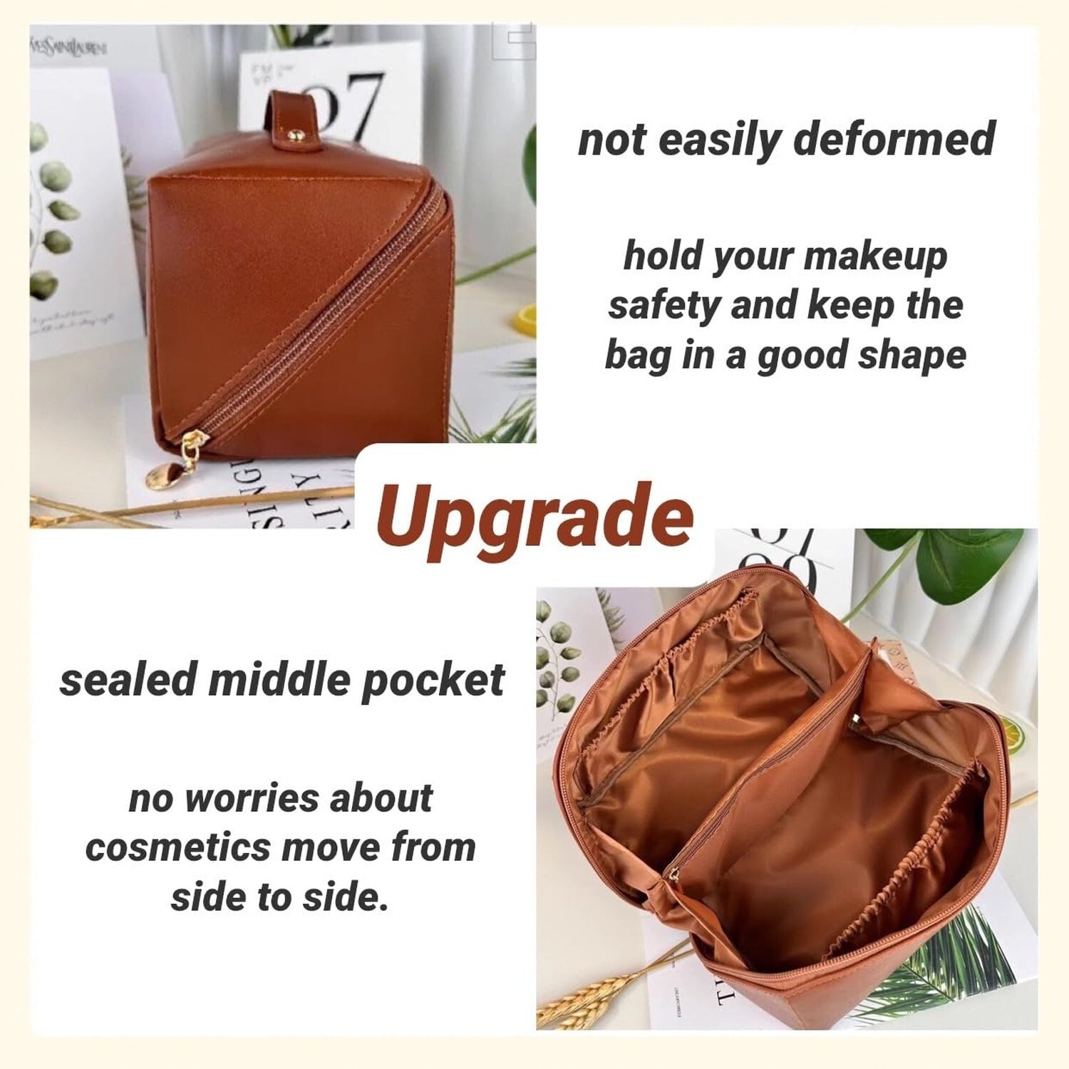 Large Portable Makeup Bag Portable Travel Cosmetic Bag Opens Flat for Women Girls Makeup Pouch Portable Zipper Bag (Brown) Product Details Color: Brown Brand: BIVIZKU MPN: CB02 EAN: 9007574512657 UPC: Does not apply Product Dimensions: 9.3 x 4.1 x 4.3 inches Item Weight: 0.25 ounces Department: Women Manufacturer: BIVIZKU Country of Origin: China Item model number: CB02 Large CapacityThis PU leather stylish cosmetic bag has large capacity that can open flat and collect all your make-up essentials. The size is 9.3in*4.3in*4.1in which can not only just for cosmetics, but also for your skincare and even shower essentials and medicines. It also includes an accessories bag for your brushes and makeup tools. Say goodbye to the messy desk and organize everything neat. Premium MaterialsMade by high quality of PU leather, smooth and soft touch with classic pattern and double layer design that provide a waterproof effect and easy to clean inside and out. Easily to protect your cosmetics from the leakage or spills and the metal zippers to keep all your makeups inside safe. Portable LightweightThis elegant large PU leather cosmetic bag is lightweight and easy to carry with you to anywhere such as business travel or vacation. It is stylish, durable and water resistant that bring you the ultimate makeup experience Multi-FunctionalNot just for makeups, but also can be a wash bag or toiletry bag, and even perfect to organize your electronic accessories, jewellery, or medicine that greatly convenience to your daily life. Perfect PresentAll colors are elegant and gorgeous that is an amazing present for your friends, family, colleagues and beloved ones. This fashionable and effortless chic makeup bag can be your best choice in any holiday!