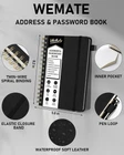 WEMATE Spiral Address Book with Alphabetical Tabs, Leather Password Book, Address Organizer Telephone Notebook Journal Keep Contact Safe Hardcover Large Print for Seniors Home Office 5.8″×8.2″, Black About this item : ALL-IN-ONE: This telephone address and password book measures 8.2 × 5.8 inches, offering 144 pages in total. Its convenient size allows for easy storage in handbags or desk drawers. It accommodates a total of 582 entries telephone and address information, with an additional 40 entries passwords. The book also includes 4 pages 12-month special dates, 2 pages emergency contacts, 2 pages important contacts, 2 pages customer service contacts, 2 pages Christmas card list, and 6 extra note pages. EXTREMELY USEFUL STICKERS: Comes with 8 sheets of address labels and 2 sheets blank correction labels, A unique way to update my old address different, Just apply a label over any address you need to change for effortless updates. ALPHABETICAL A-Z TABS: With separate tabbed sections designated for every letter of the alphabet, you can effortlessly locate the exact information you're searching for. Each section is designed to hold up to 24 addresses, and the book provides ample writing space to help you update and securely store your contact details with ease. PREMIUM QUALITY: Durable Vegan Leather, Exquisite Texture. 100 GSM Paper Resists Ink Bleed-through, Ensuring Long-lasting Value. Elevate Your Address Management. Enjoy 180° Lay Flat for effortless writing, 360° Flipping for comfortable reading from any angle. With added functionality of Sturdy Pen Loop & Elastic Band, Inner Pocket. SUPER NICE GIFT: A practical gift for family, friends, and partners. A great choice for seniors or individuals who favor a clean and easily legible design. With large print - easy readability
