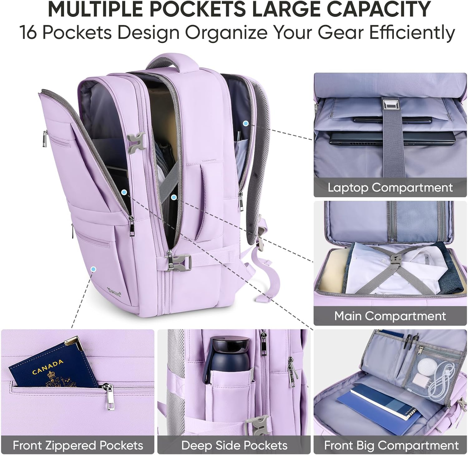 Large Capacity: The travel laptop backpack comes in two sizes: L (17"x12.6"x8"), weighing 1.5 lb, with a 28 L capacity, and XL (20"x13.7"x11"), 2.2 lb, 40 L capacity, expandable to 48 L; This backpack for travel offers a large capacity with dedicated spaces for your laptop, books, wallet, clothing, and other essentials; The multi-pocket design ensures that your items are organized and easily accessible Ergonomic Design: Crafted from durable 600D dulling twill, this suitcase backpack features a waterproof outer layer and breathable mesh back with sponge shoulder straps to relieve shoulder pressure; The waist buckle provides added stability, while the extended adjusting straps on the shoulder pads make it easy to customize the fit; The thickened sponge lining in the laptop compartment protects against collisions, making it a perfect choice for both women's business trips and men's laptop storage Convenience Design: This large travel backpack comes with a 180-degree zipper opening, facilitating quick passage through airport security; Luggage backpack compact design is suitable for overhead compartments and under-seat storage, making your travel experience seamless and hassle-free Multifunctional Use: Whether you need a handbag or a backpack, this big backpack is suitable for both uses; It can be used as a duffel bag, travel backpacks, teacher's bag or nurse's bag, mommy bag, gym bag, carry on bag; It is ideal for weekends, traveling, college or daily work, and it is also a great birthday, holiday gift for your friends and family; Note: Carry-on dimensions may vary by airline. Please check with your airline's regulations to ensure compliance BALEINE Quality Commitment: BALEINE stands behind the quality of our products; If for any reason you are not satisfied with your purchase, please contact us; We provide 30-day money back guarantee; 100% Satisfaction for risk-free shopping Product Description