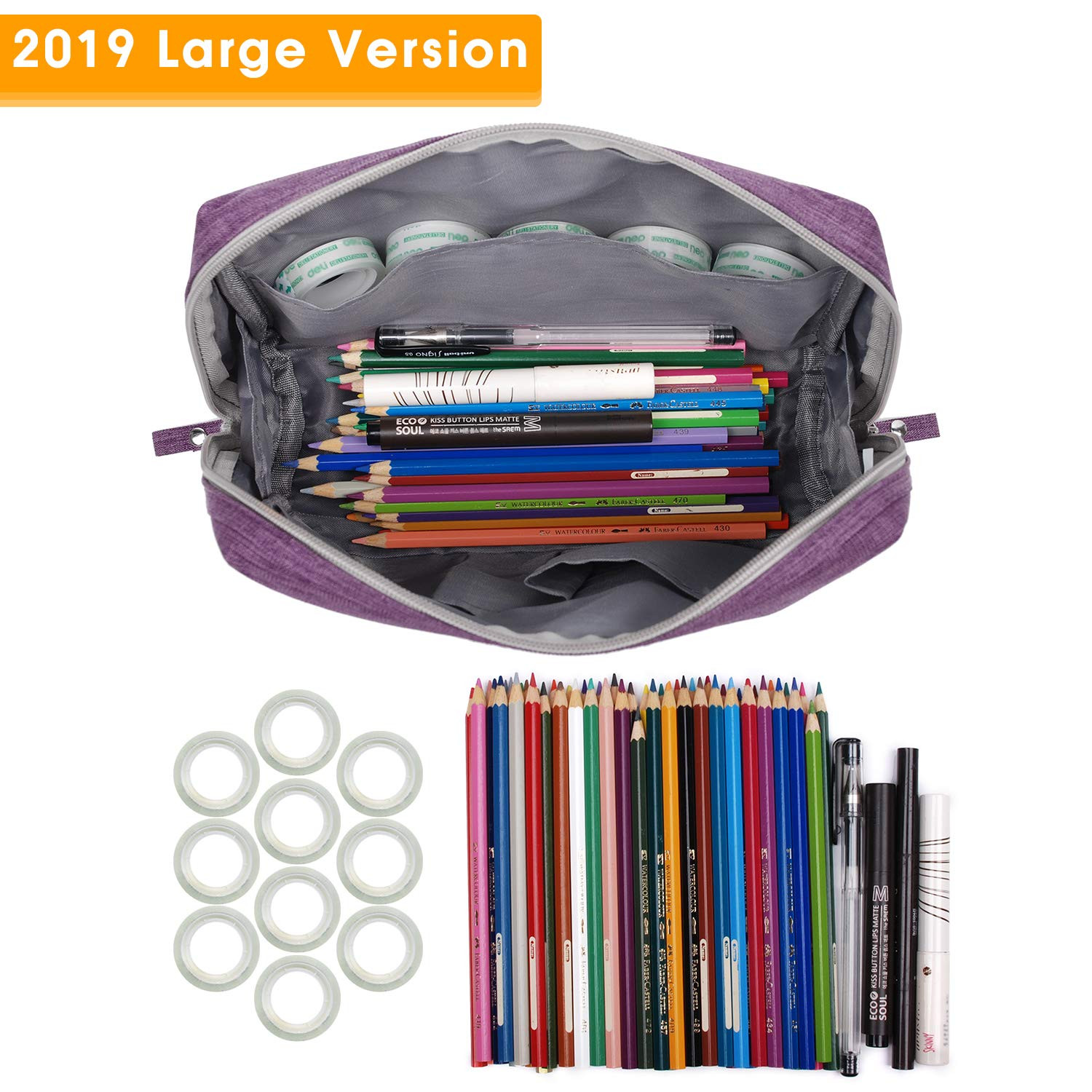 LARGE VERSION - Size 9"x6.7"x3.9”/23x17x10 cm, weigh only 4 ounce, decent size without any bulkiness ROOMY MAIN COMPARTMENT - One main compartment with 5 small pockets neatly organizes your makeup. One large compartment easily holds travel-size toiletries or large skin-care products. Side pockets holds your concealer, lipsticks or other small items WATER-RESISTENT - Water-resistent and durable fabric protects your gear from spills, easy to wipe down CONSISTENT QUALITY - Thick fabric, nice lining, reliable double zippers, zip-top closure CUTE PRESENT - Great for daily use or travel. Each of these large pouch has vibrant color
